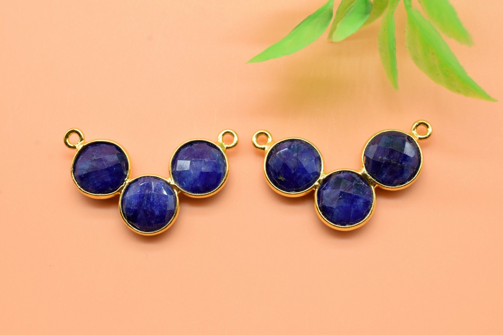 10mm Blue Sapphire Pendant,Necklace Connector,Blue Sapphire Jewelry,Blue Gemstone Pendant,Sapphire Necklace, Connector,Jewelry Making Supply