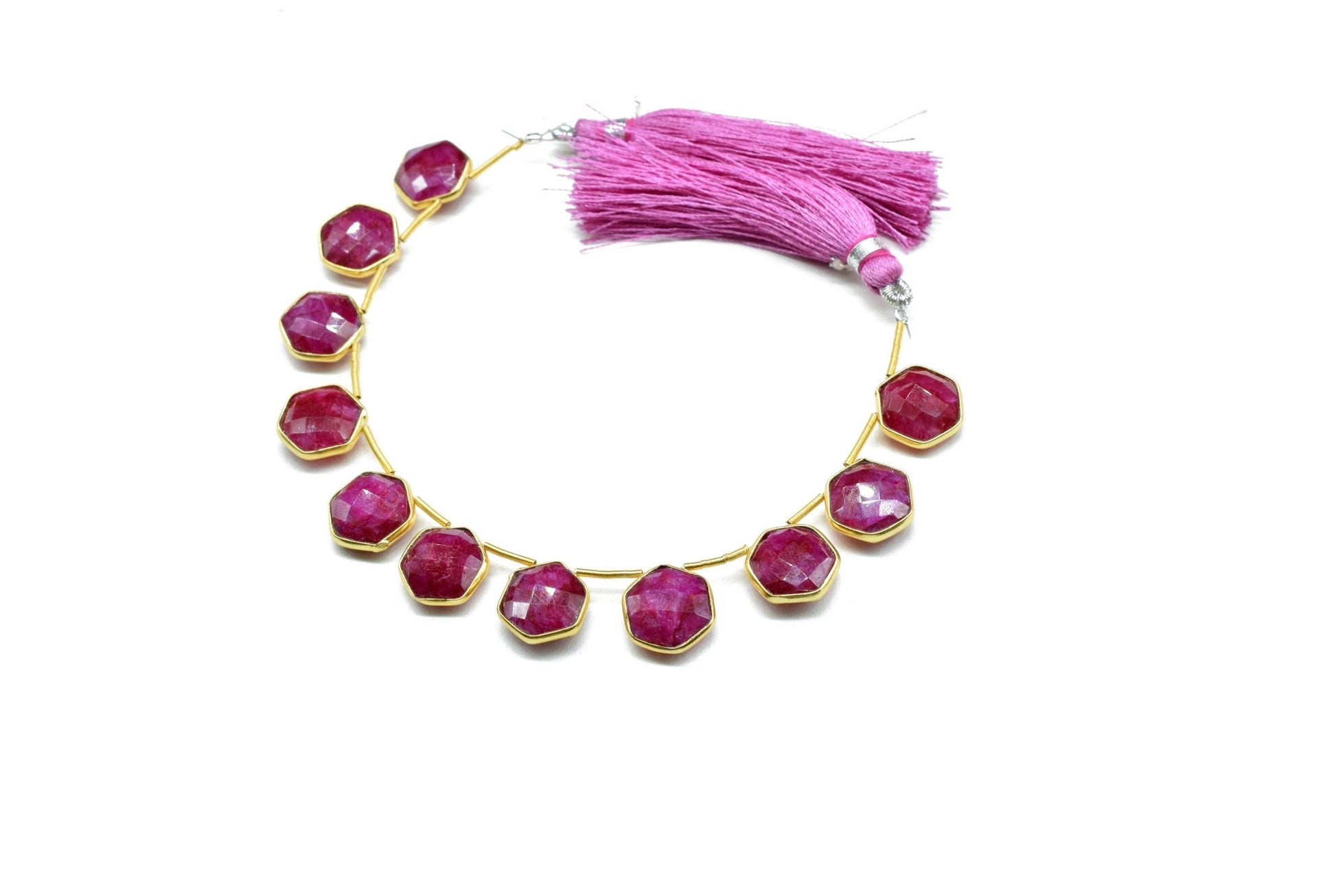 11 Pieces Ruby 10mm Faceted Hexagon Shape Single Bail Connector strand,Single Bail Charm, Ruby Faceted Gemstone Jewelry Making Component