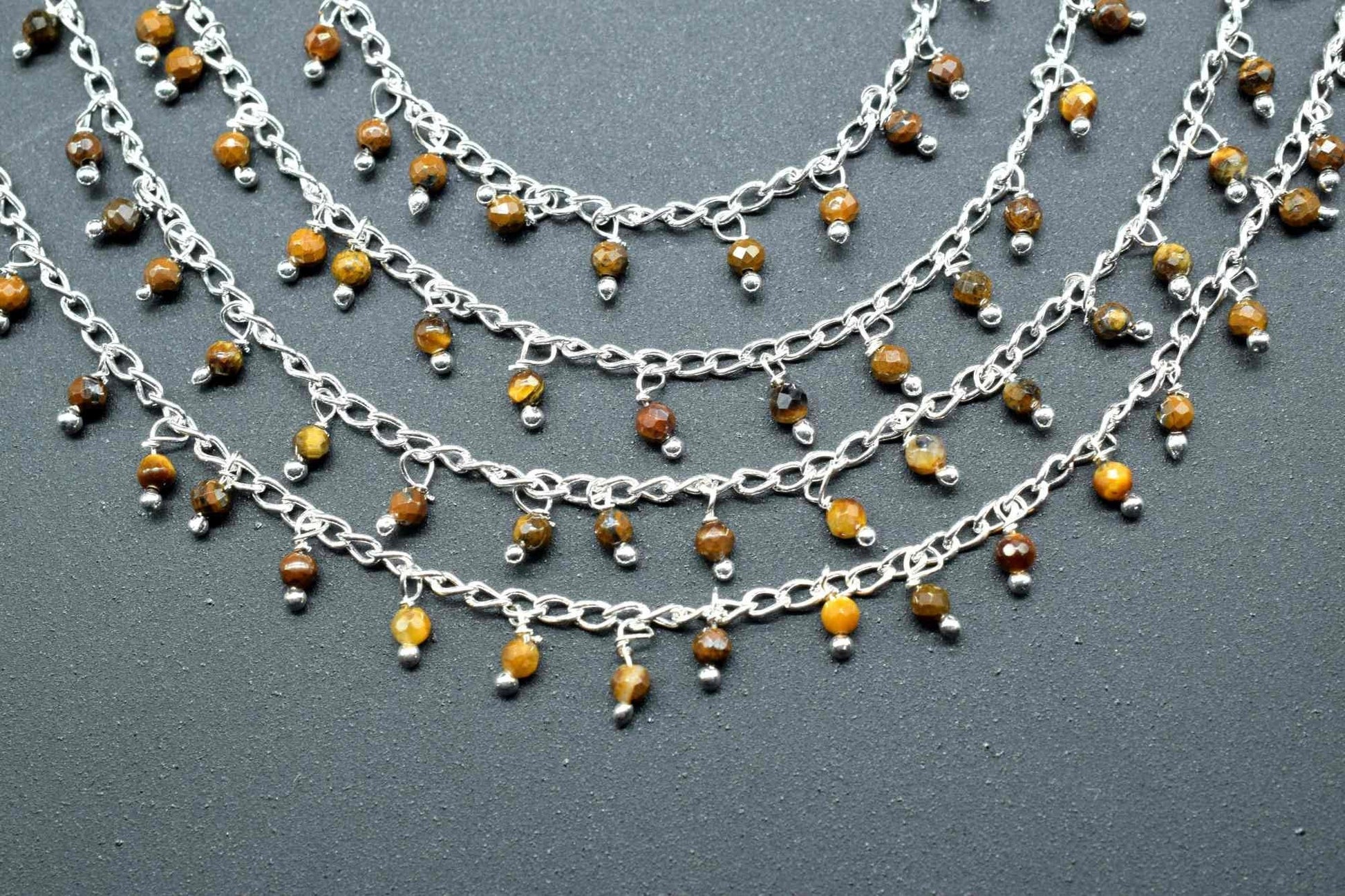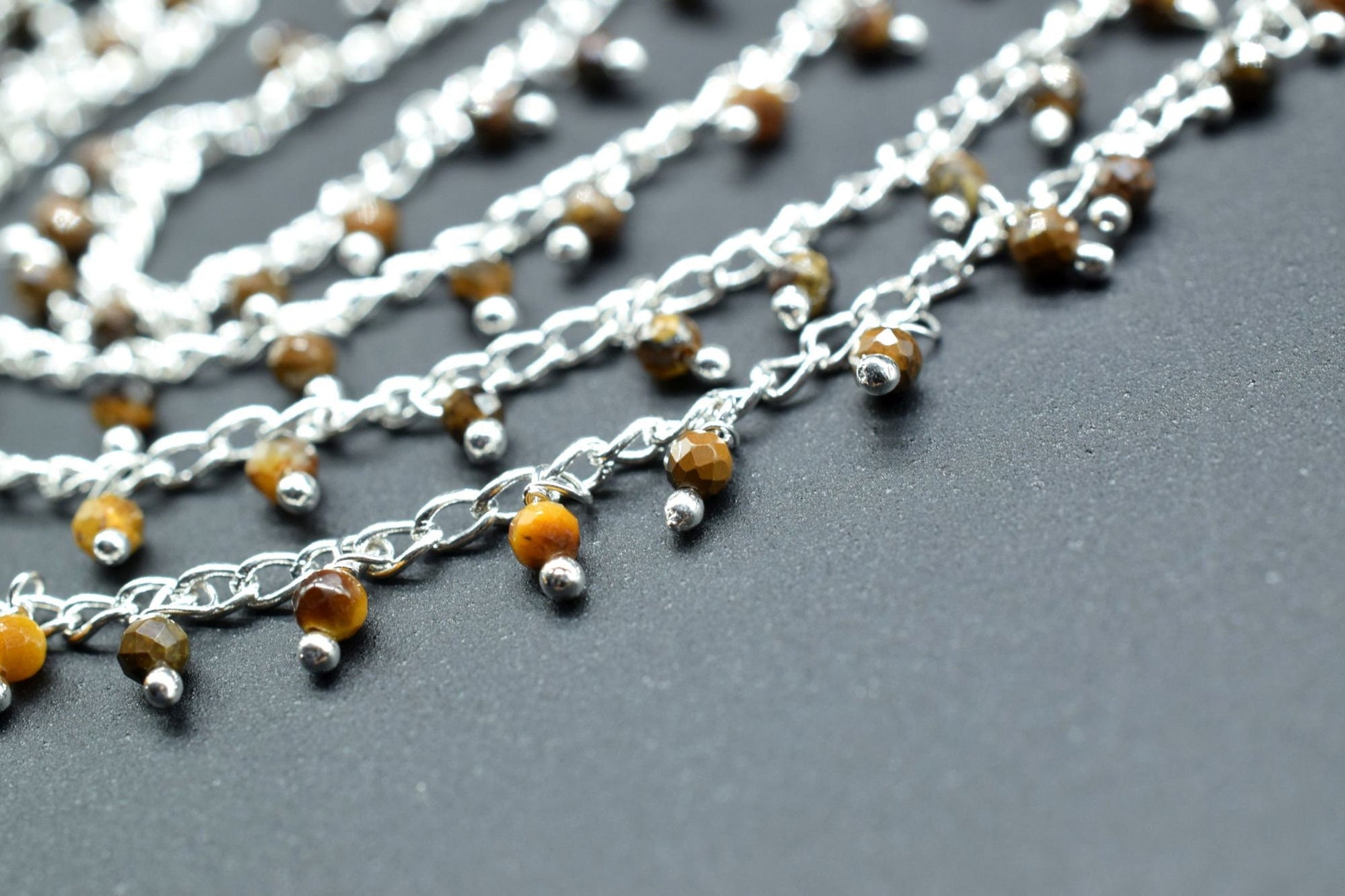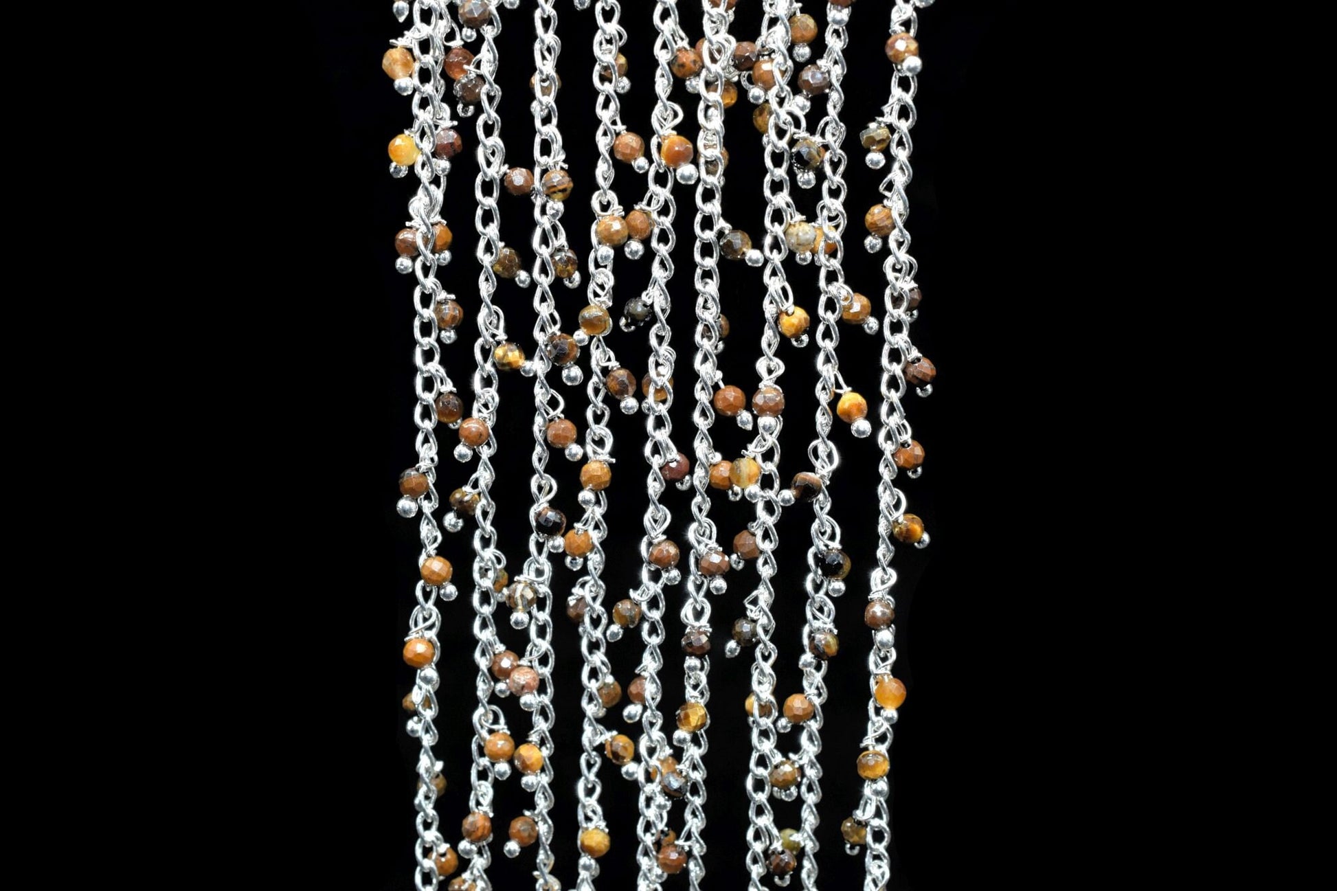 2mm Tiger Eye Cluster Rosary,Tiger Eye Beads Rosary Chain,Wire Wrapping Gemstone Chain,2mm Rondelle Beads Rosary,Gemstone Rosary Roll,