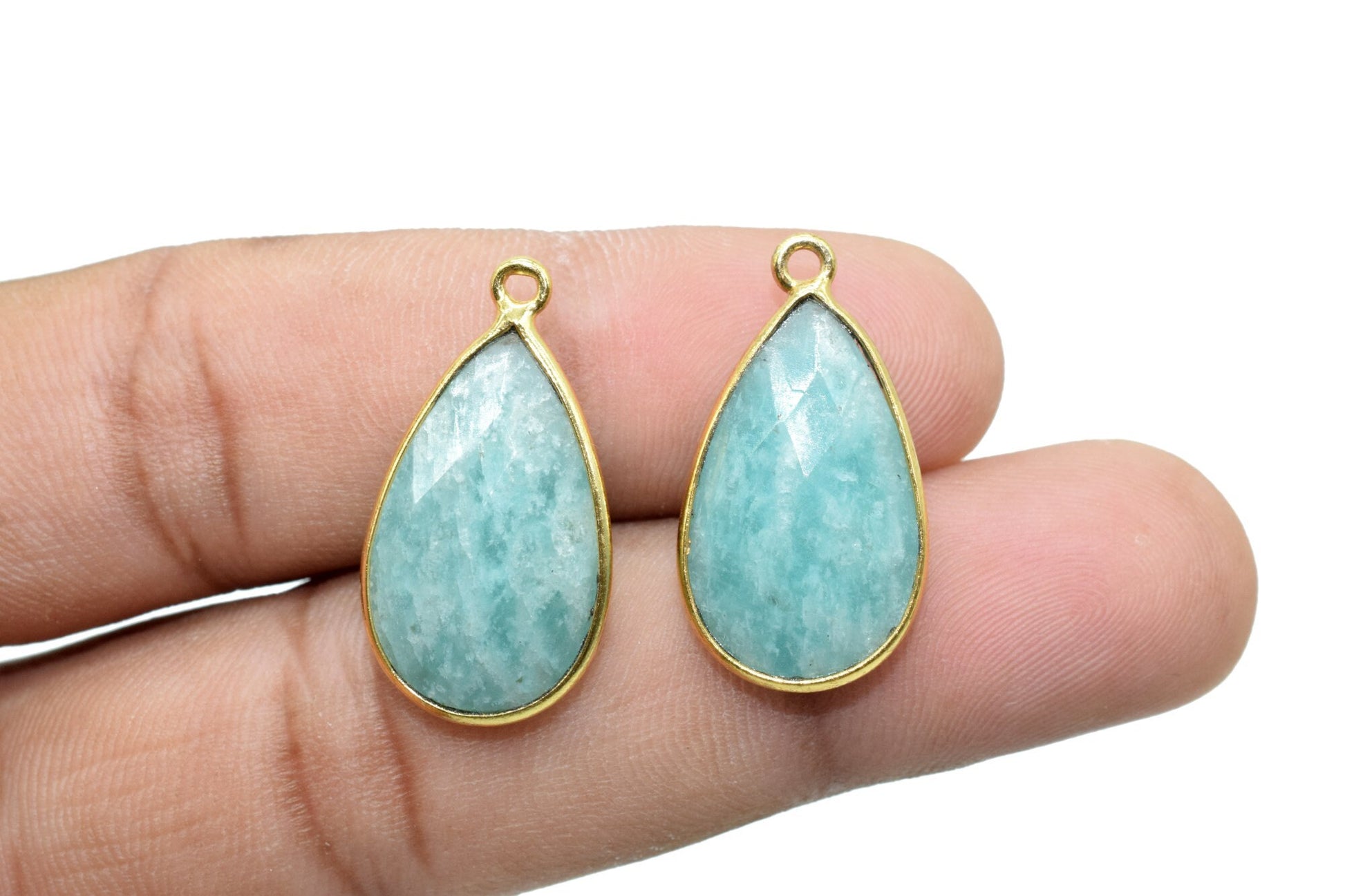 Amazonite 12x20mm Pear shape charm,Checker Board cut Amazonite Pendant,Amazonite charms,Amazonite Pear Briolette,Amazonite single bail charm