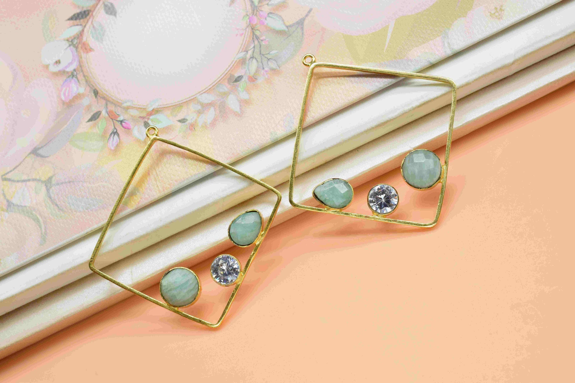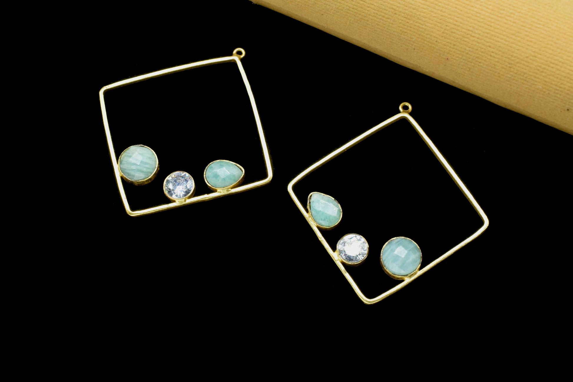 Amazonite 32mm Square Shape Component,Handmade Pendant,Dangle Earring Component,Findings Earring Component,Amazonite Component Jewelry, Gift