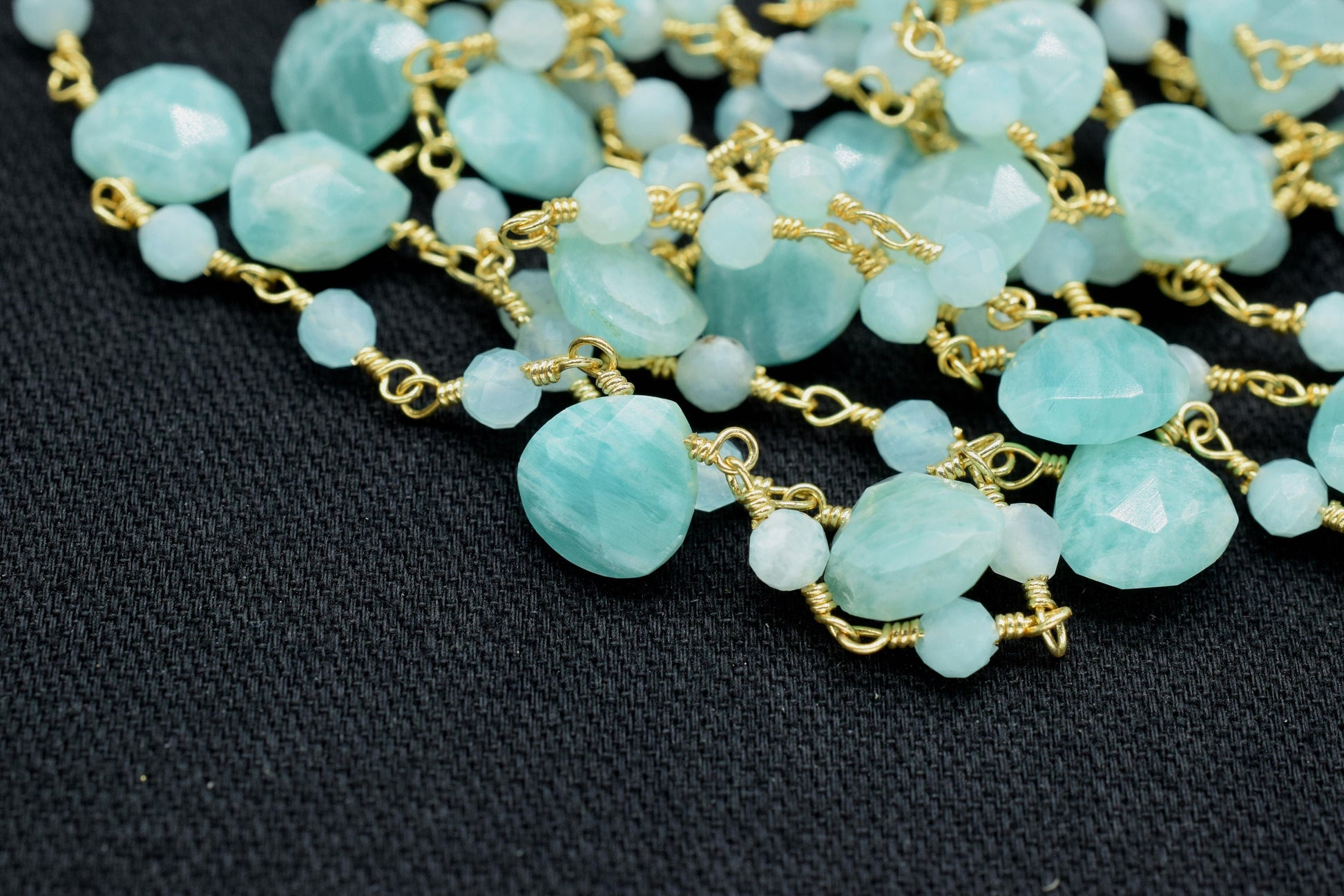 Amazonite beaded drop Chain,Amazonite 3mm Faceted Beads chain,Gemstone drop chain, gemstone rosary,briolette rosary,gemstone rosary,necklace