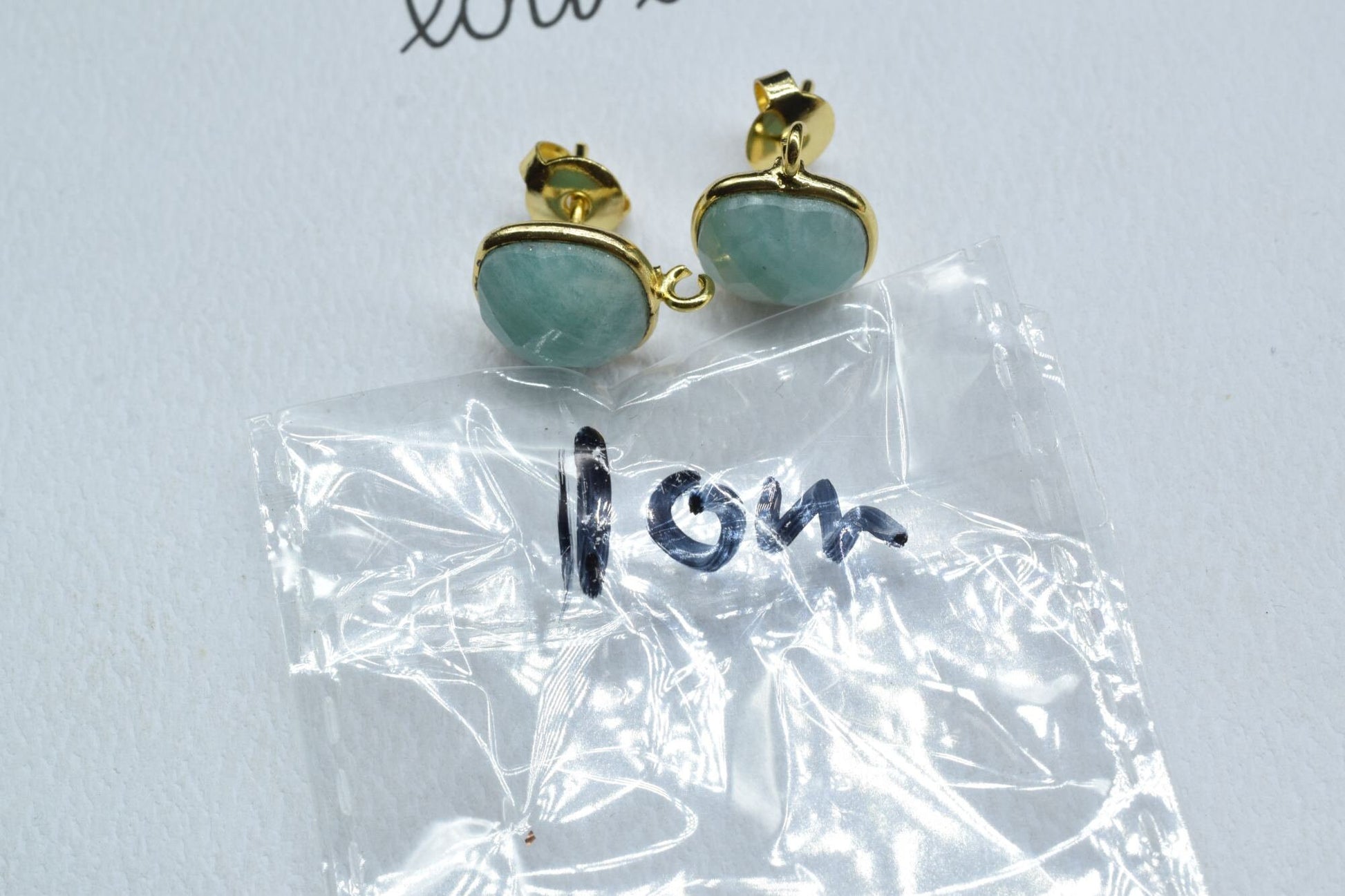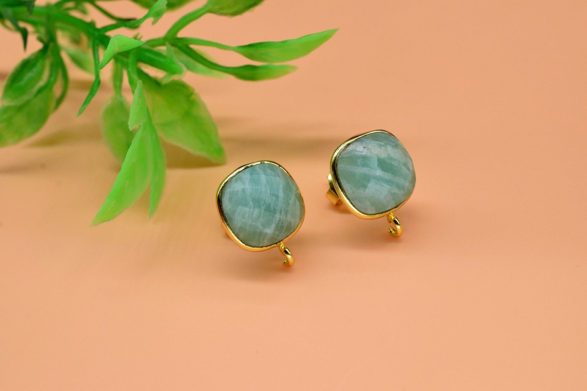 Amazonite Earring Connector,Gemstone Stud Ear Post,Cushion Earring Connector,Bezel frame Connector,Gemstone Bezel Connector,Amazonite Bezel
