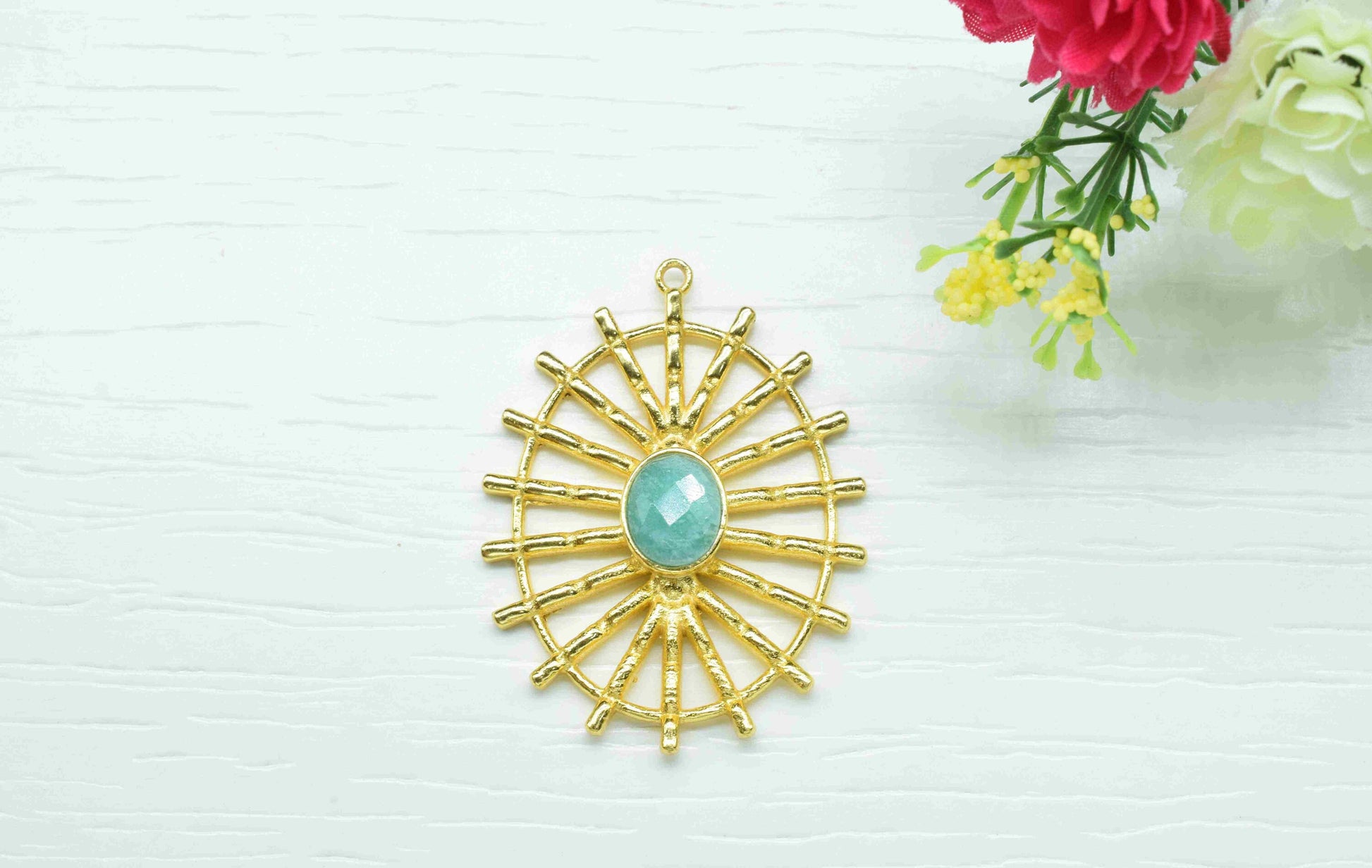 Amazonite Gemstone Component Single Bail Charm,Amazonite Connector Pendant,Finding Gold Plated Connectors,Pendant Jewelry, Earring Component