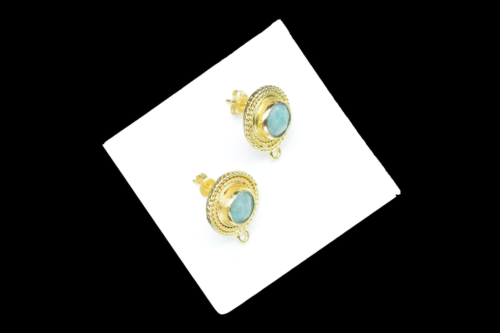 Amazonite Gemstone Earring/Amazonite Round Earring/Designer Bezel Earring/Gold Plated Jewelry/Handmade Jewelry/Earring Connector/Gift