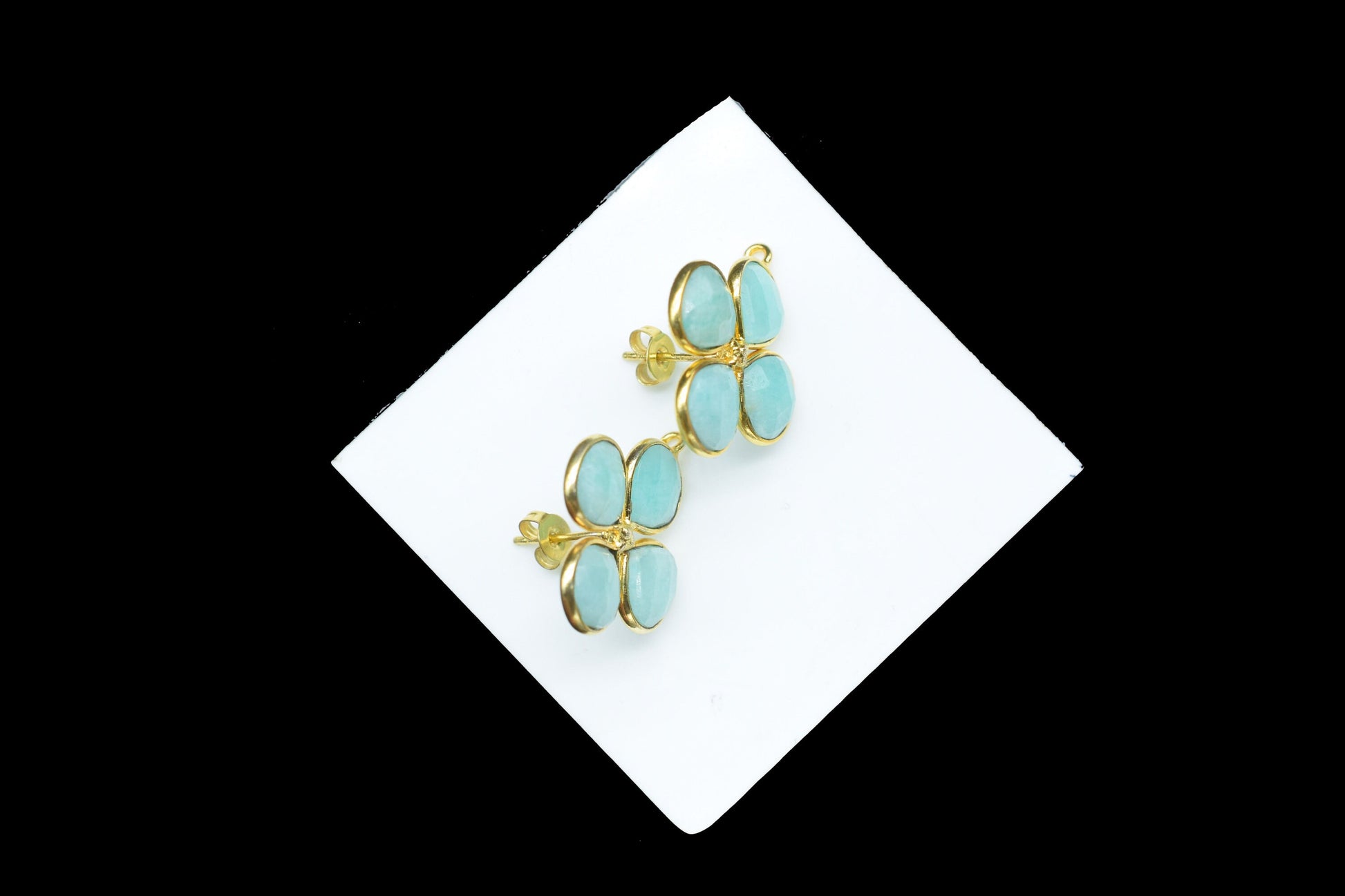 Amazonite Gemstone Earring Connector/Gold Plated Jewelry/Amazonite Handmade Jewelry/Bezel Component/Jewelry making Stone/Heart Shape Earring