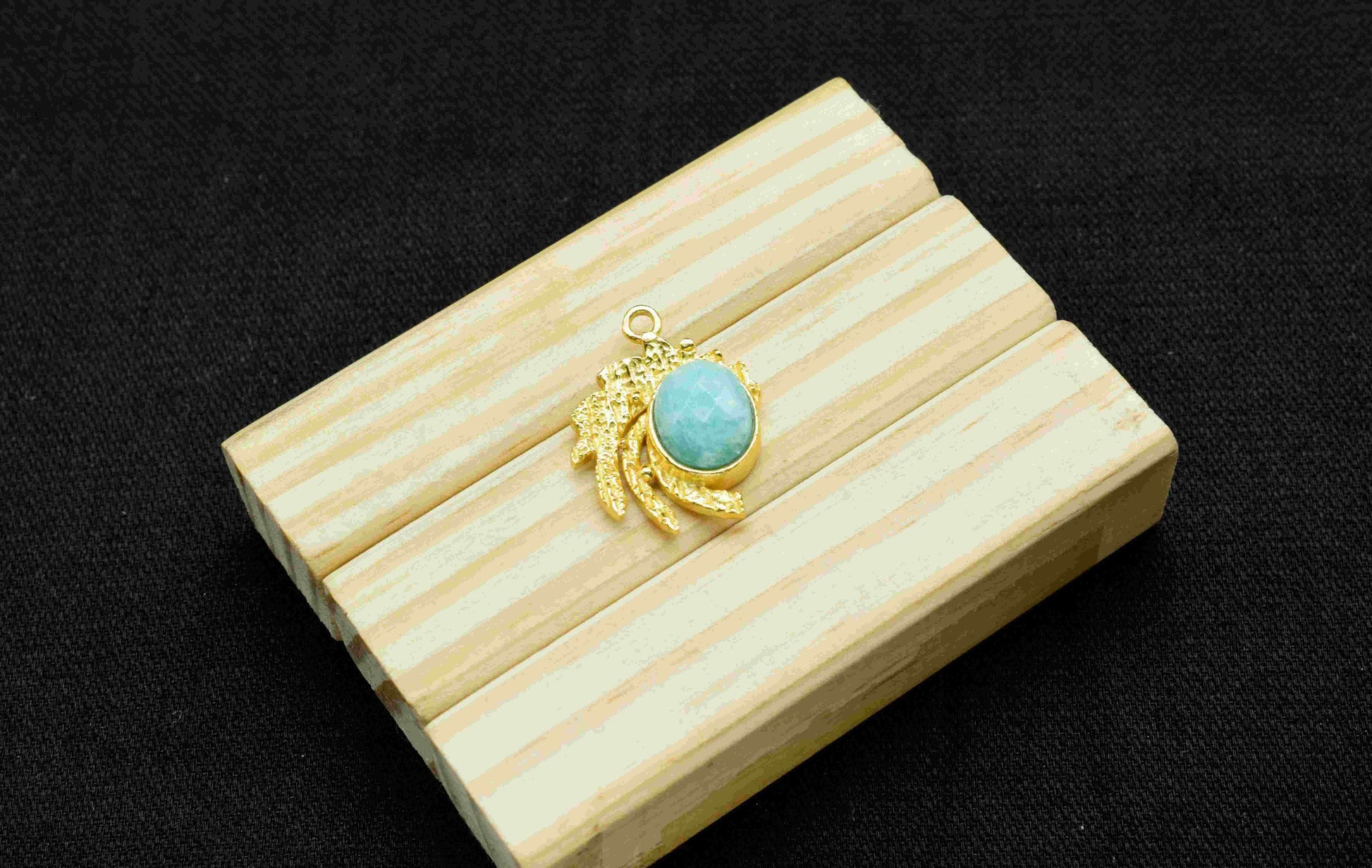 Amazonite Pendant , Gemstone Handmade Pendant , Bulk Gemstone Pendant , Gold Plated Connectors ,Single Bail Gemstone Connector Charm