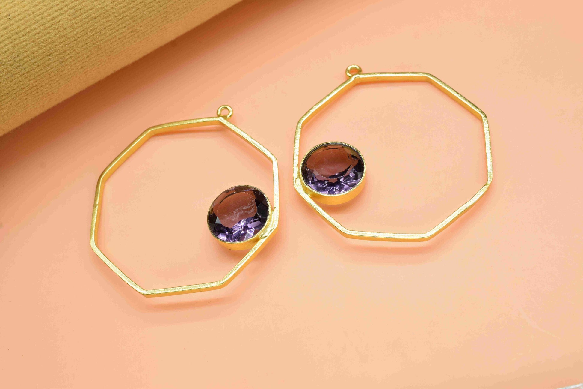 .Amethyst 10mm Round Shape Pendants, Amethyst Component Jewellery, Gemstone Earrings, Finding 32mm Hexagon Shape Necklace, Component Jewellery