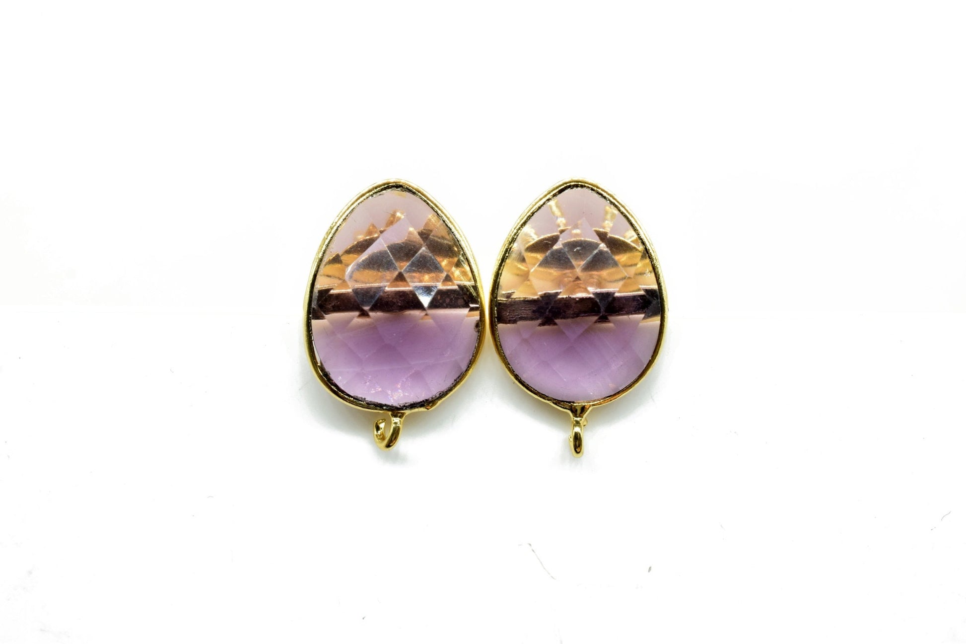 Amethyst 12x16mm teardrop Earring Connector,Jewelry Making,Amethyst Ear post stud,Single Loop Gemstone Connector,Teardrop Earring Connector,