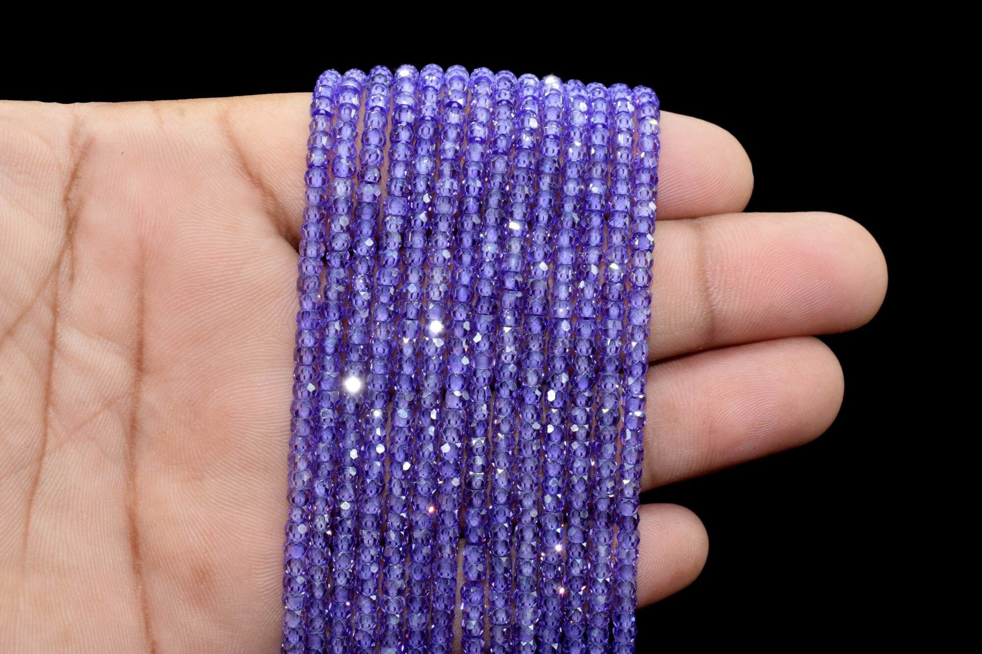 Amethyst 3mm Faceted Rondelle Beads,Cubic Zircon Beads Strand,Bead Necklace,Faceted Micro CZ Beads 13 Inches Strand Handmade Craft