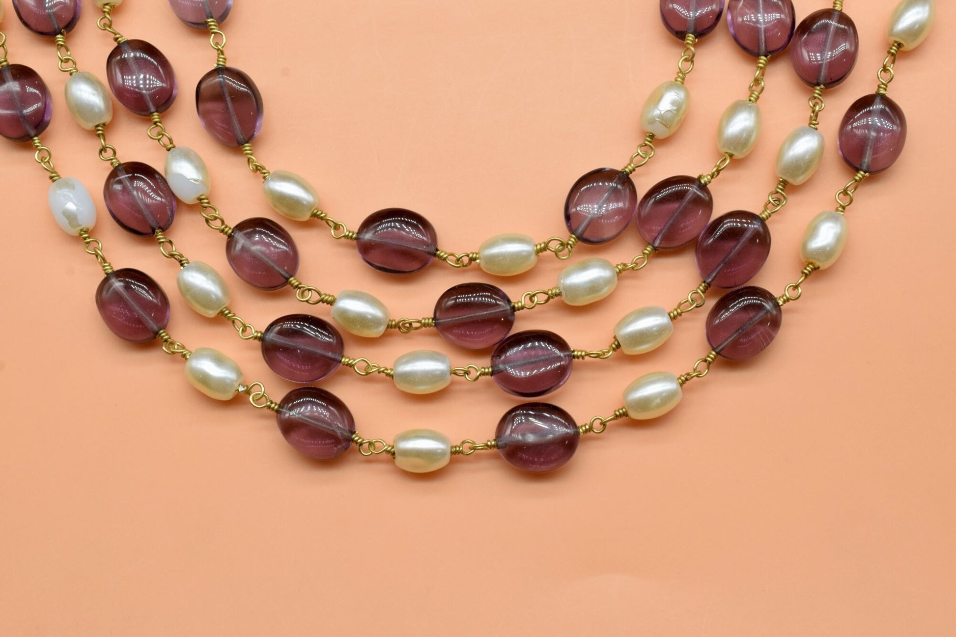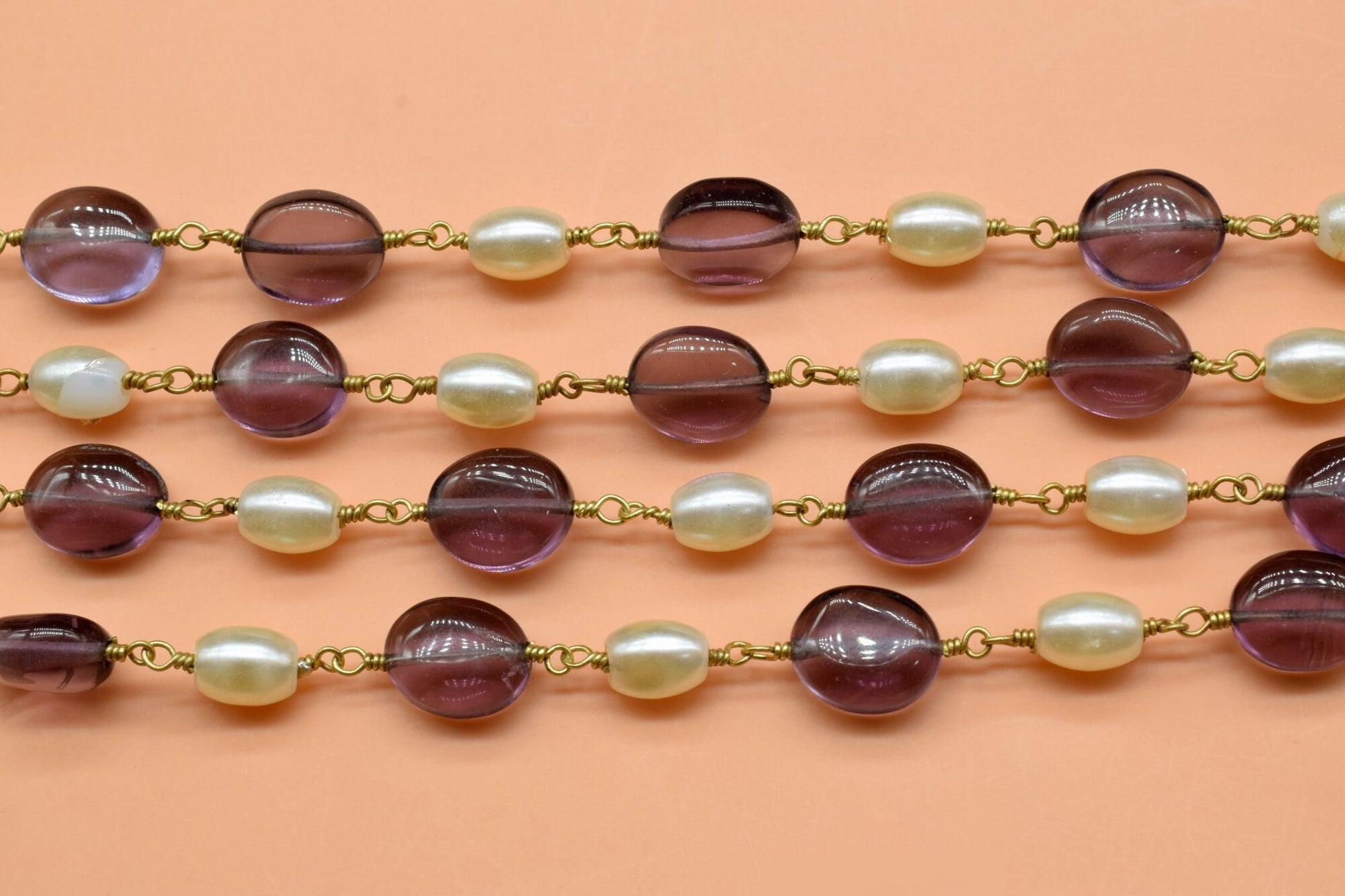 Amethyst And Pearl Beaded Rosary Chain, Gold Plated Wire Wrapped chain by foot, Diy Jewelry Making Beaded Chain, New Designer Jewelry Chain