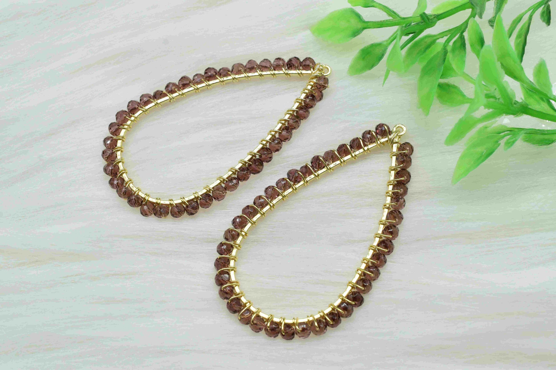 .Amethyst Beaded Earring Connectors, Gemstone Wire Wrapped Pendant Jewelry, Components Pair Gold Plated Earrings,Handmade Pear Shape Earrings