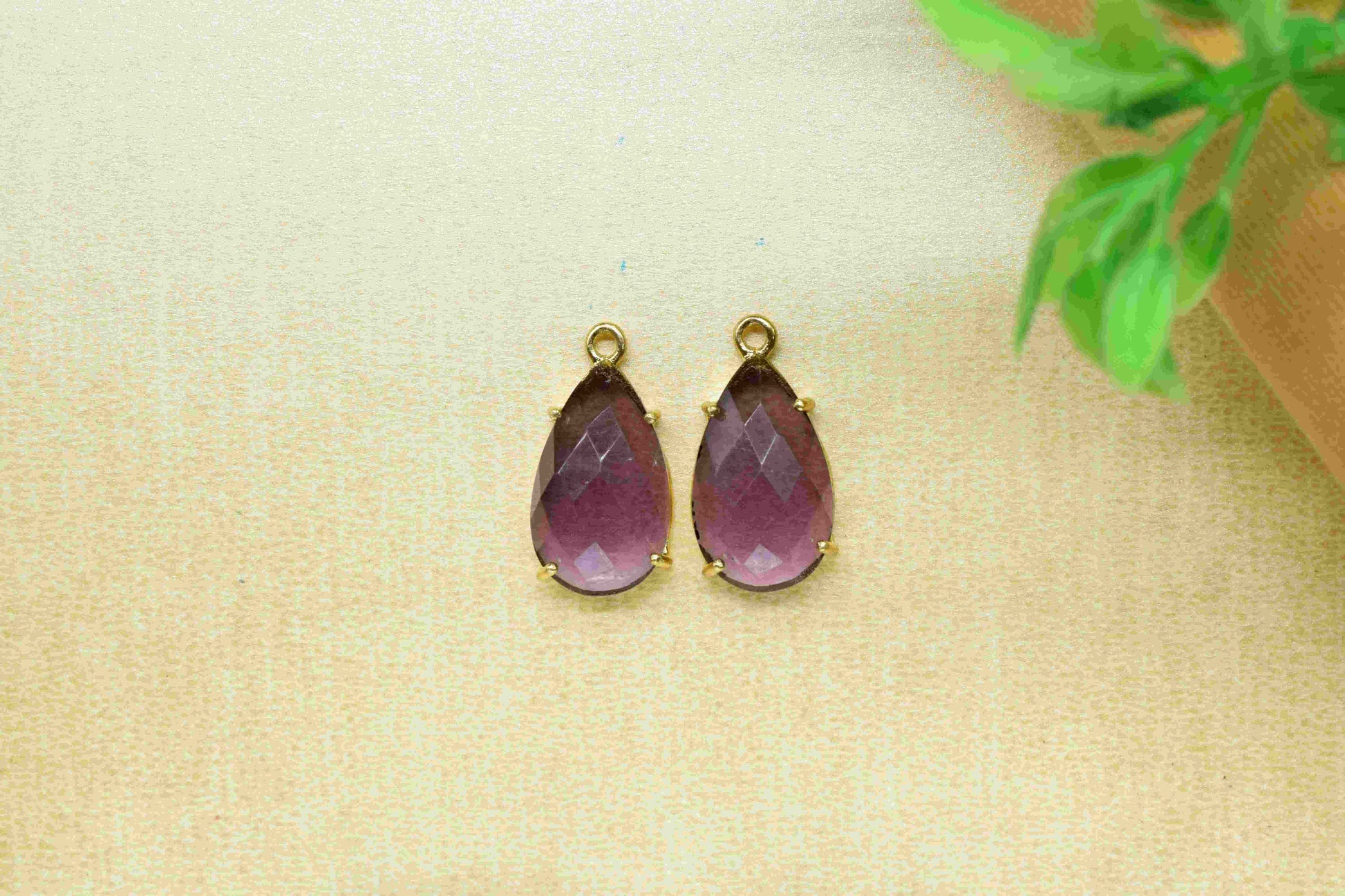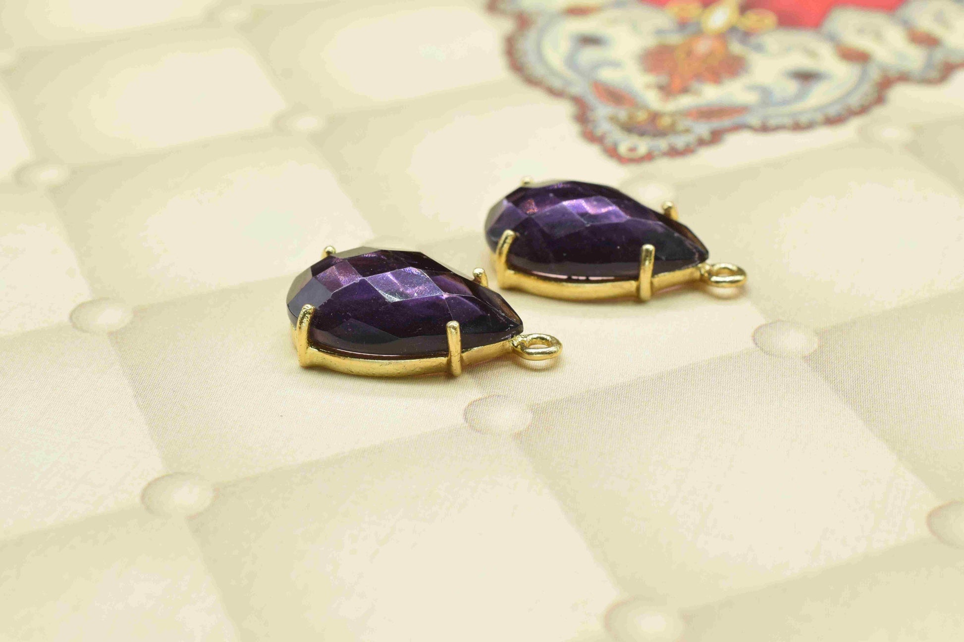 Amethyst Gemstone 12x20mm Teardrop Shape Connector,Amethyst Single Loop Gemstone Connector Jewelry Making,Amethyst Gold Plating Component