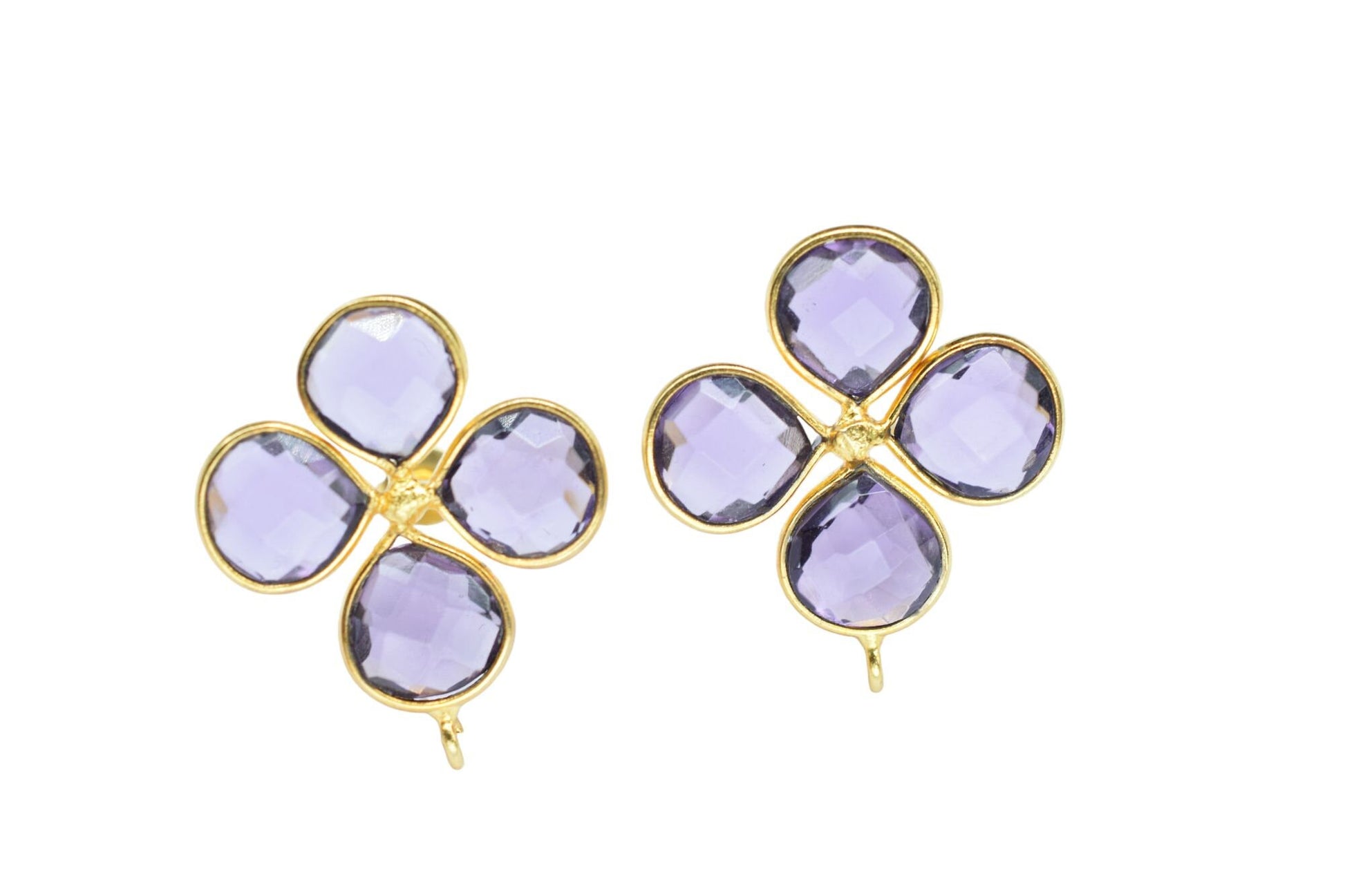 Amethyst Gemstone Earring Connector/Gold Plated Jewelry/Amethyst Handmade Jewelry/Bezel Component/Jewelry making Stone/Heart Shape/Gift