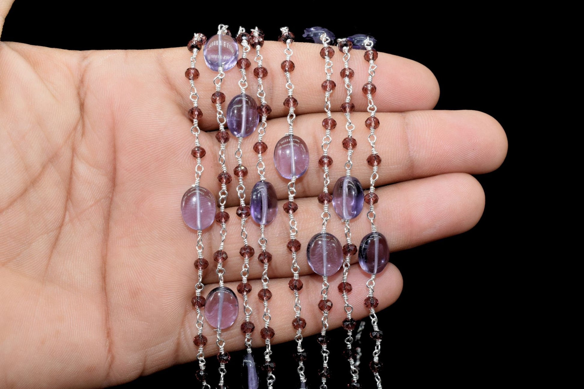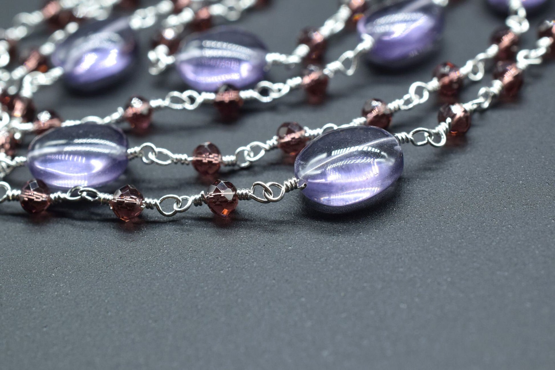 Amethyst Gold Plated wire Wrapped Rosary Chain,Smooth Natural Amethyst Oval Nugget Shaped Beads,Garnet beaded chain,Amethyst Rosary Chain