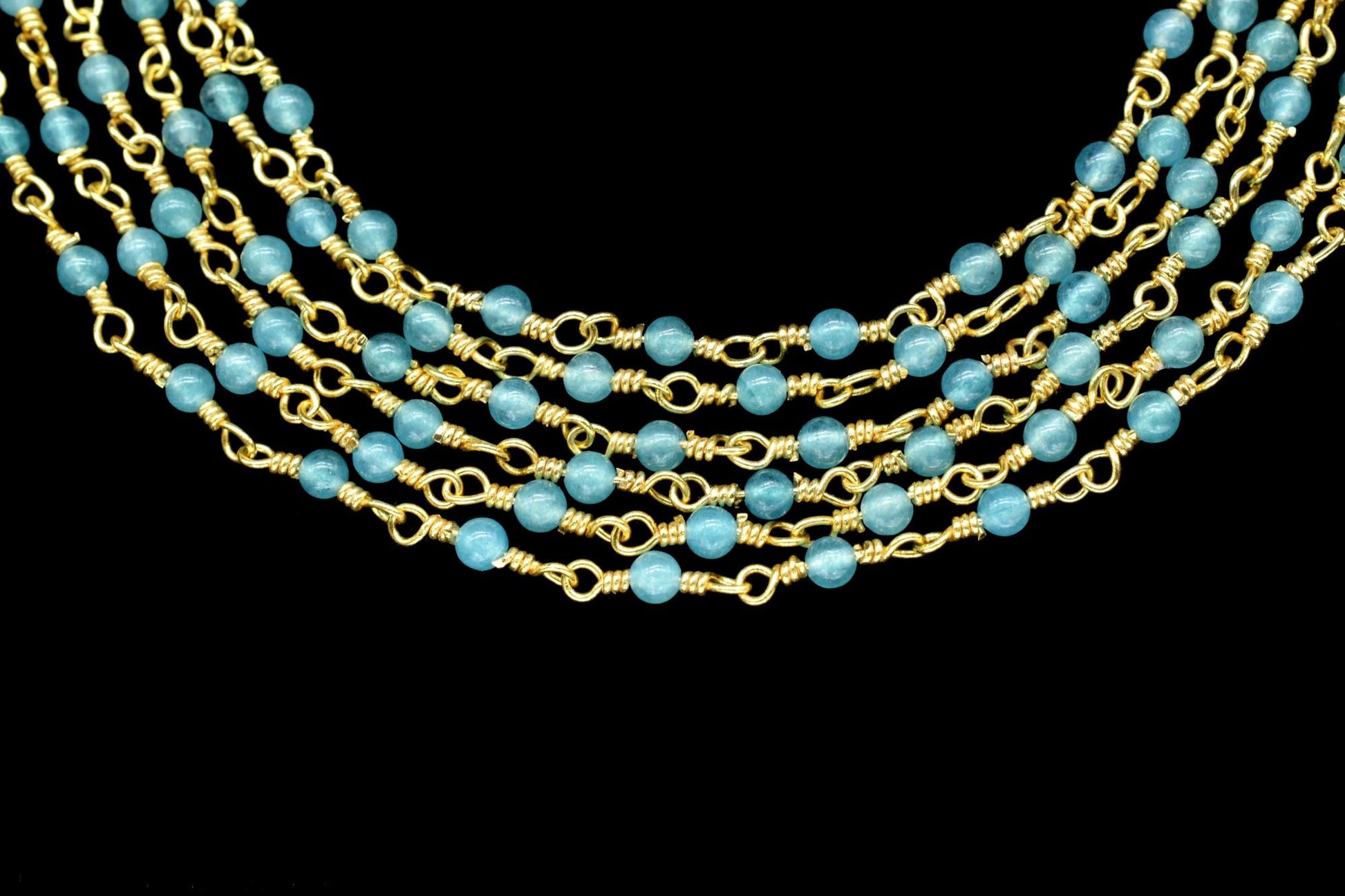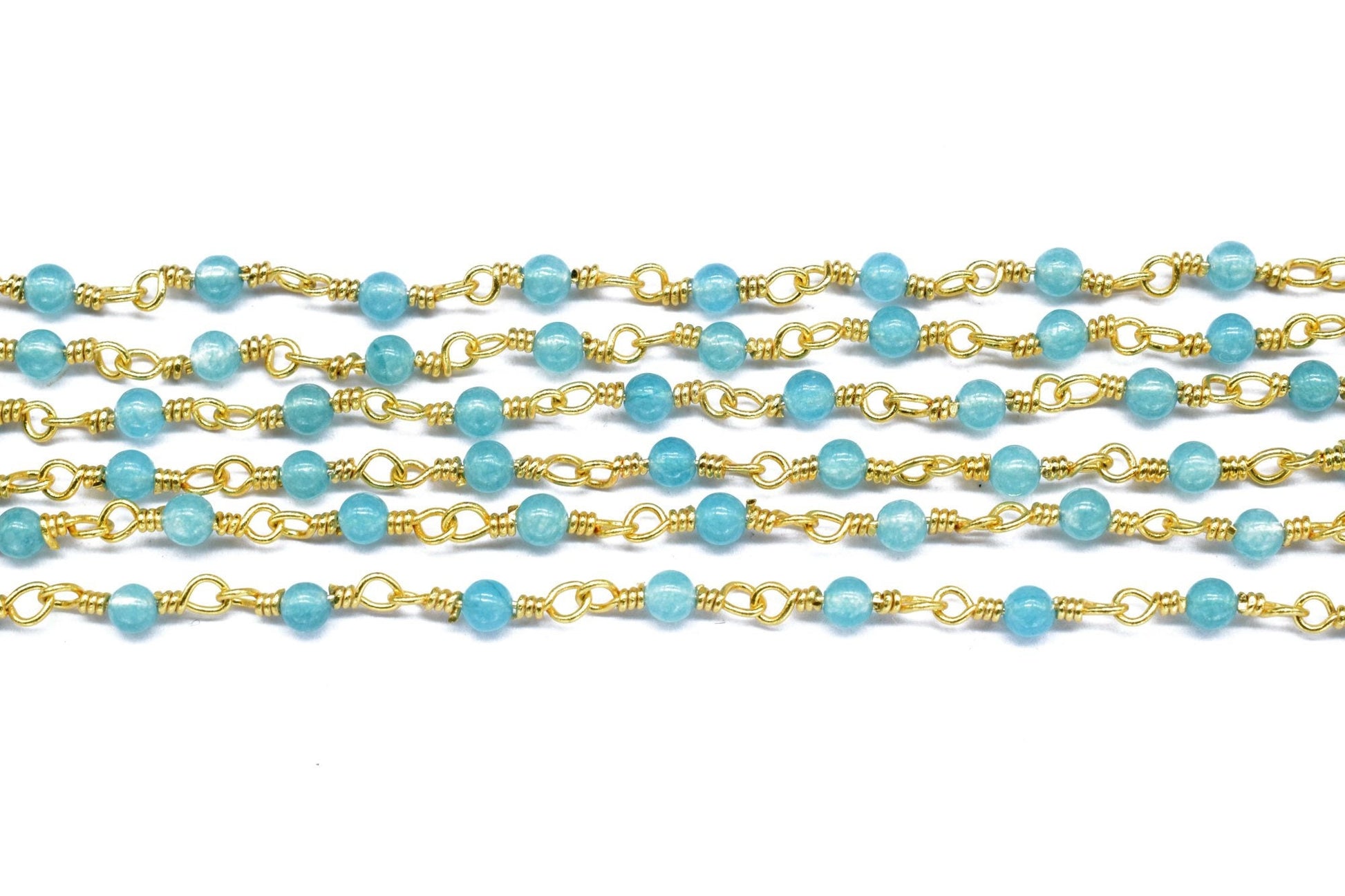 Apatite 2.5mm Beaded Chain,Apatite wire wrapped chain,Beaded chain,rosary chain,jewelry making supplies,Apatite Gold Plated Wire Wrapped