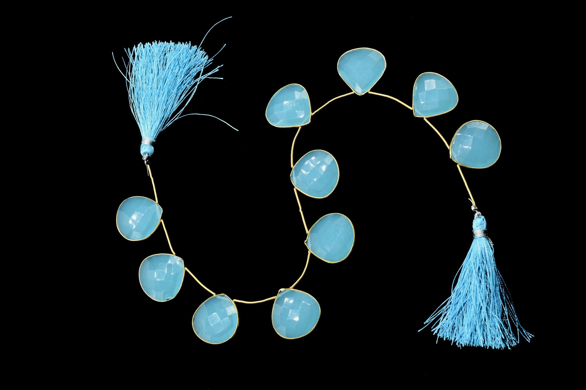 Aqua chalcedony 10 Pieces 20mm heart shape bezel strand,Gemstone Drilled bezel strandgemstone Charm,Faceted Gemstone JewelryMaking Component