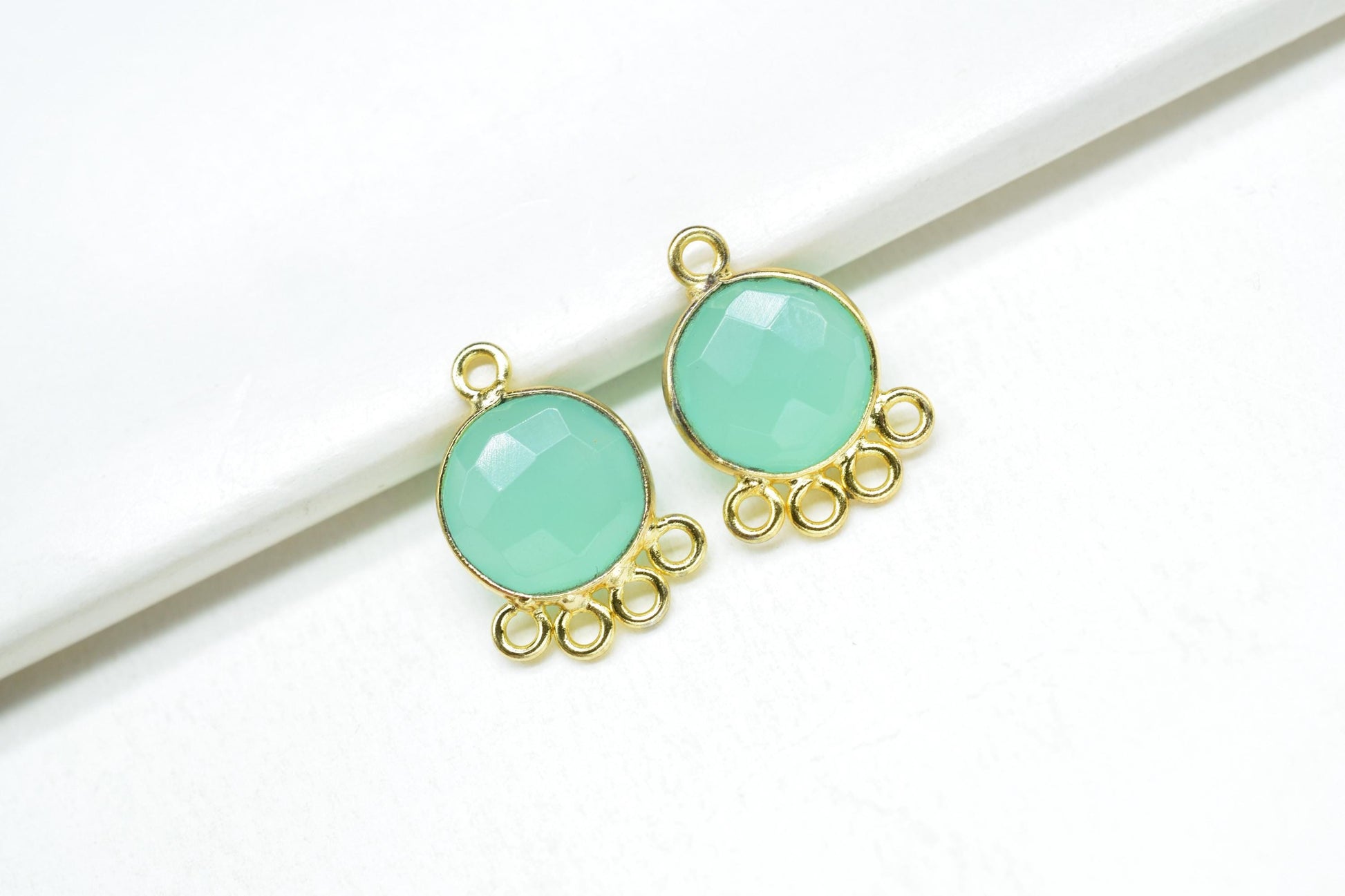 Aqua Chalcedony 10mm Round Bezel Charm/Gemstone Brass Component/Single Bail Pendant charms/Round Handmade Jewellery Connector/B'day Gift