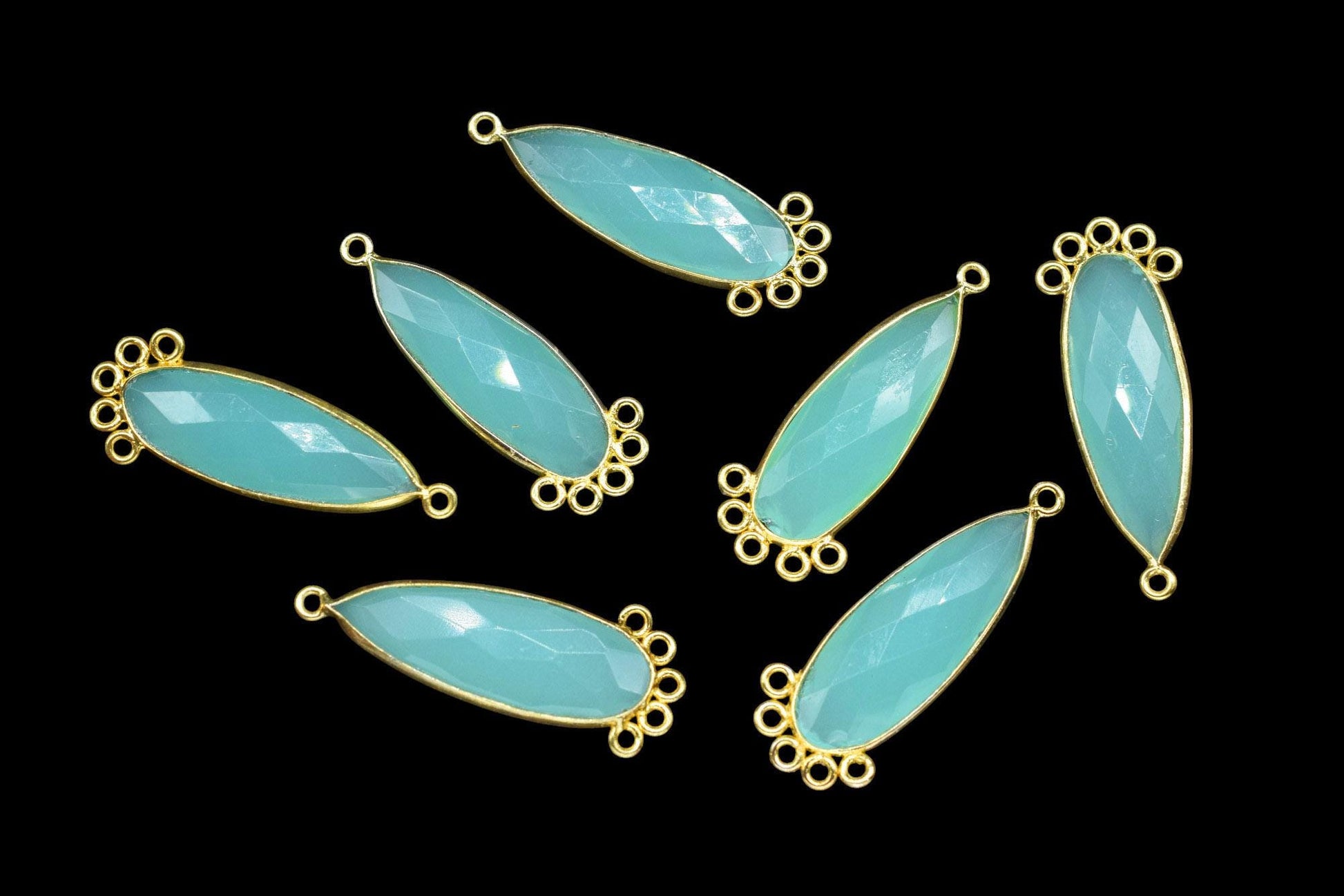 Aqua Chalcedony 10x30mm Teardrop Bezel Charm/Charms Connector/Handmade Jewellery Connectors/Gemstone Brass Component/Women Jewelry/Gift