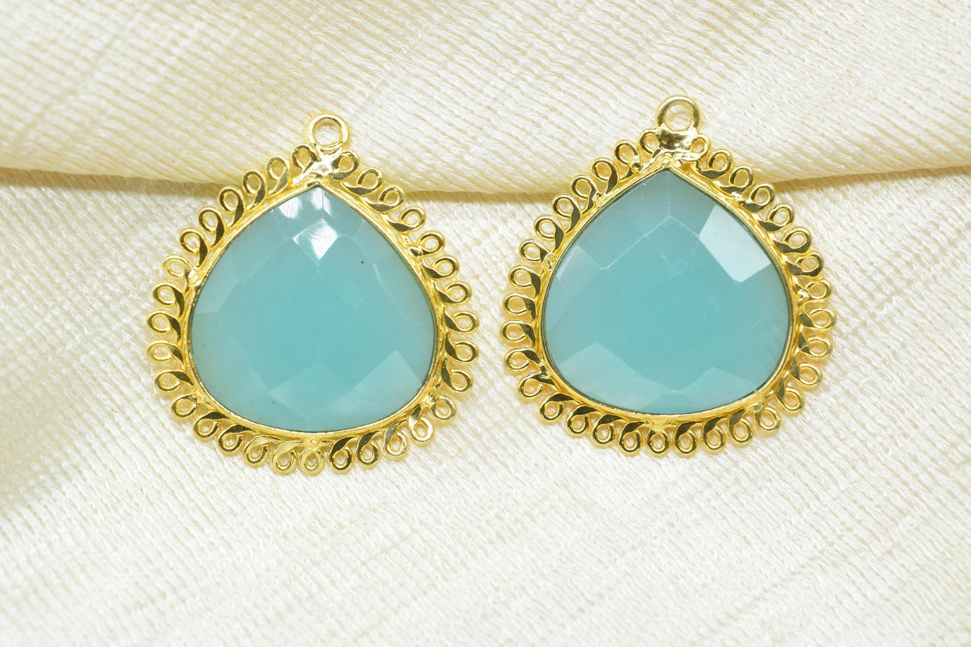 Aqua Chalcedony 20mm Heart Bezel Charms,Gemstone Brass Component,Single Bail Pendant,Handmade Jewellery Connectors,Wholesale Jewelry,Gift