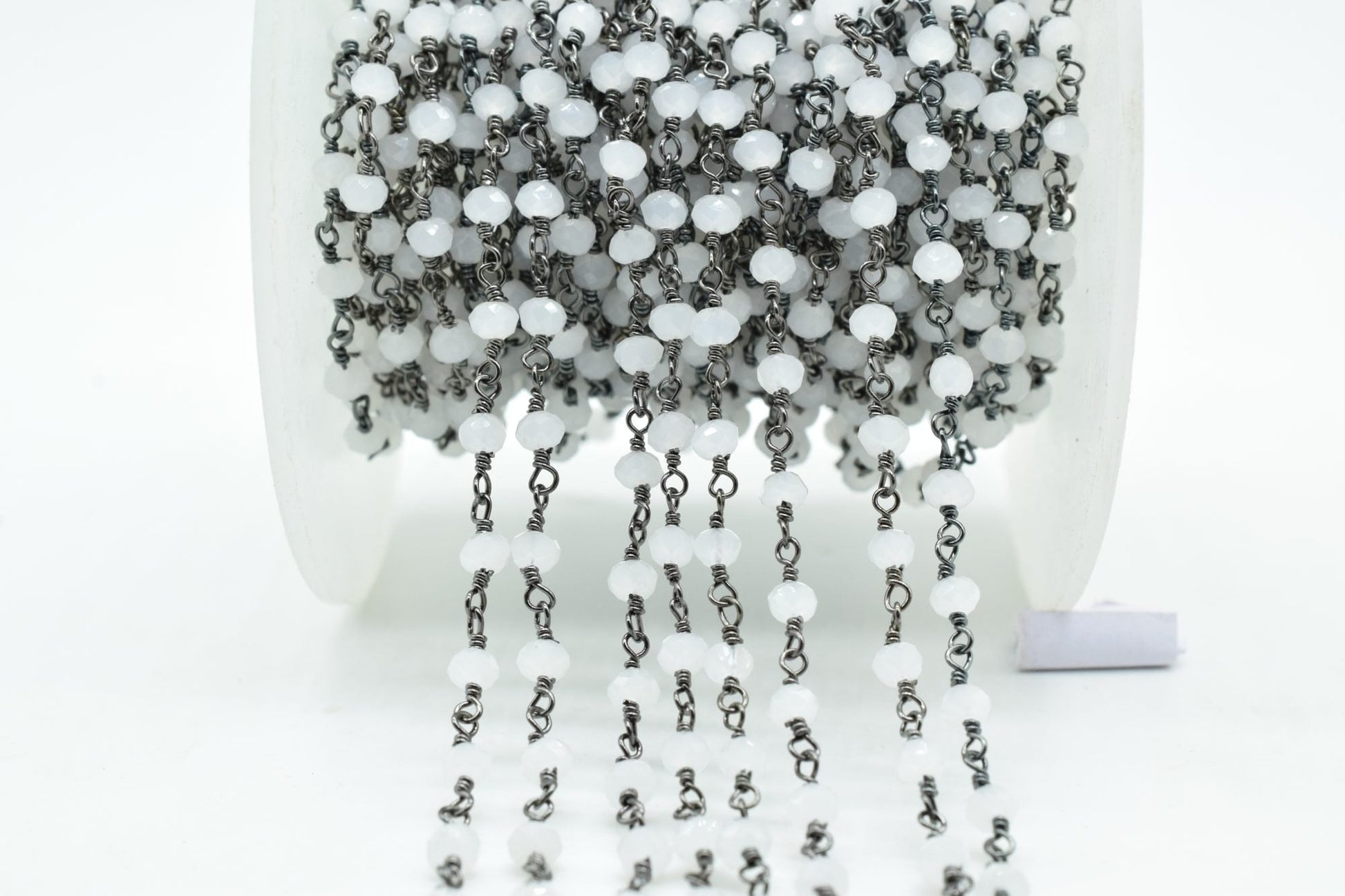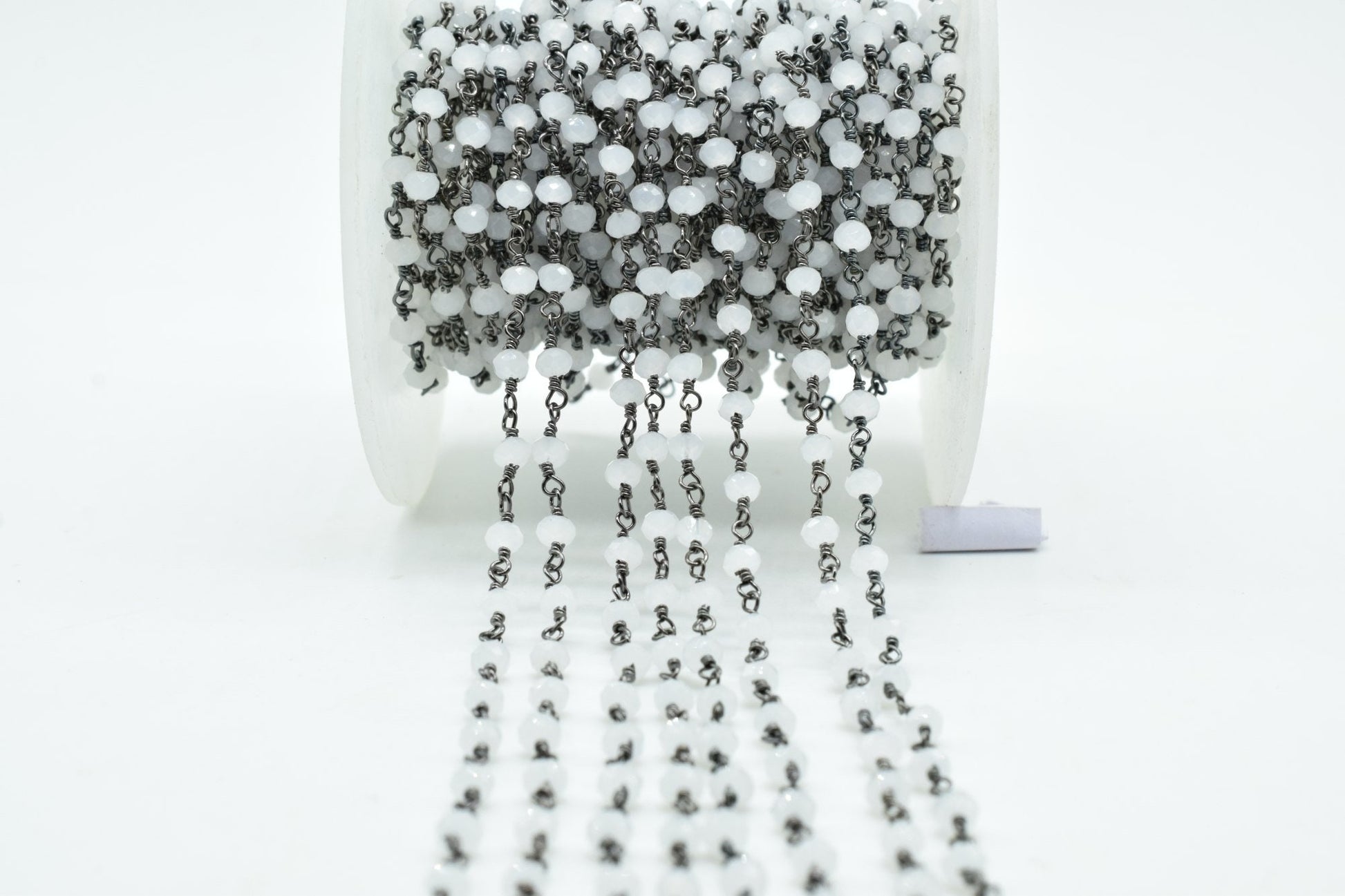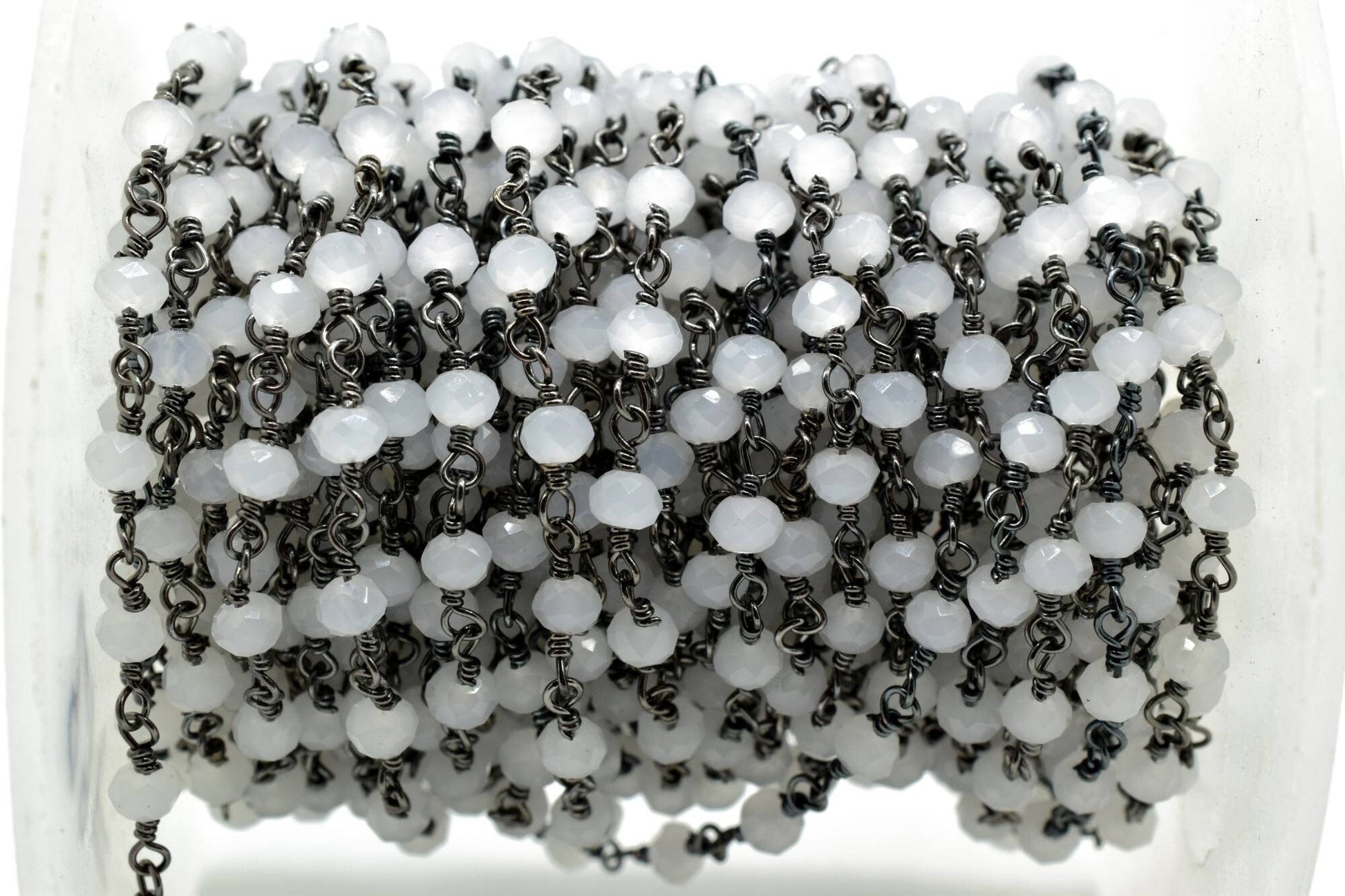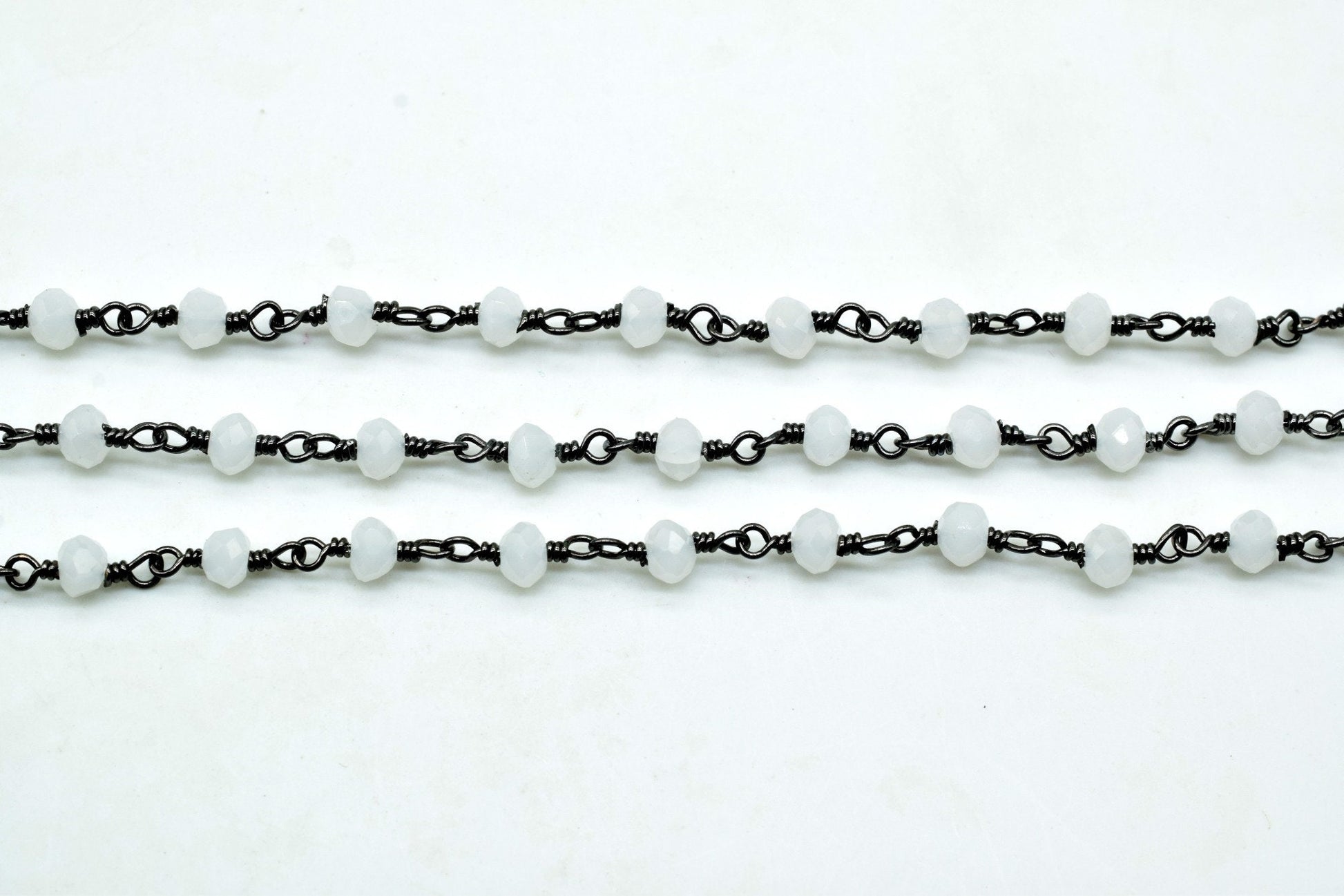 Aqua Chalcedony 3mm Beaded Chain,Aqua Chalcedony Rosary,Black rhodium Wire Wrap Chain,Aqua Chalcedony Brass chain,jewelry making chains,gift