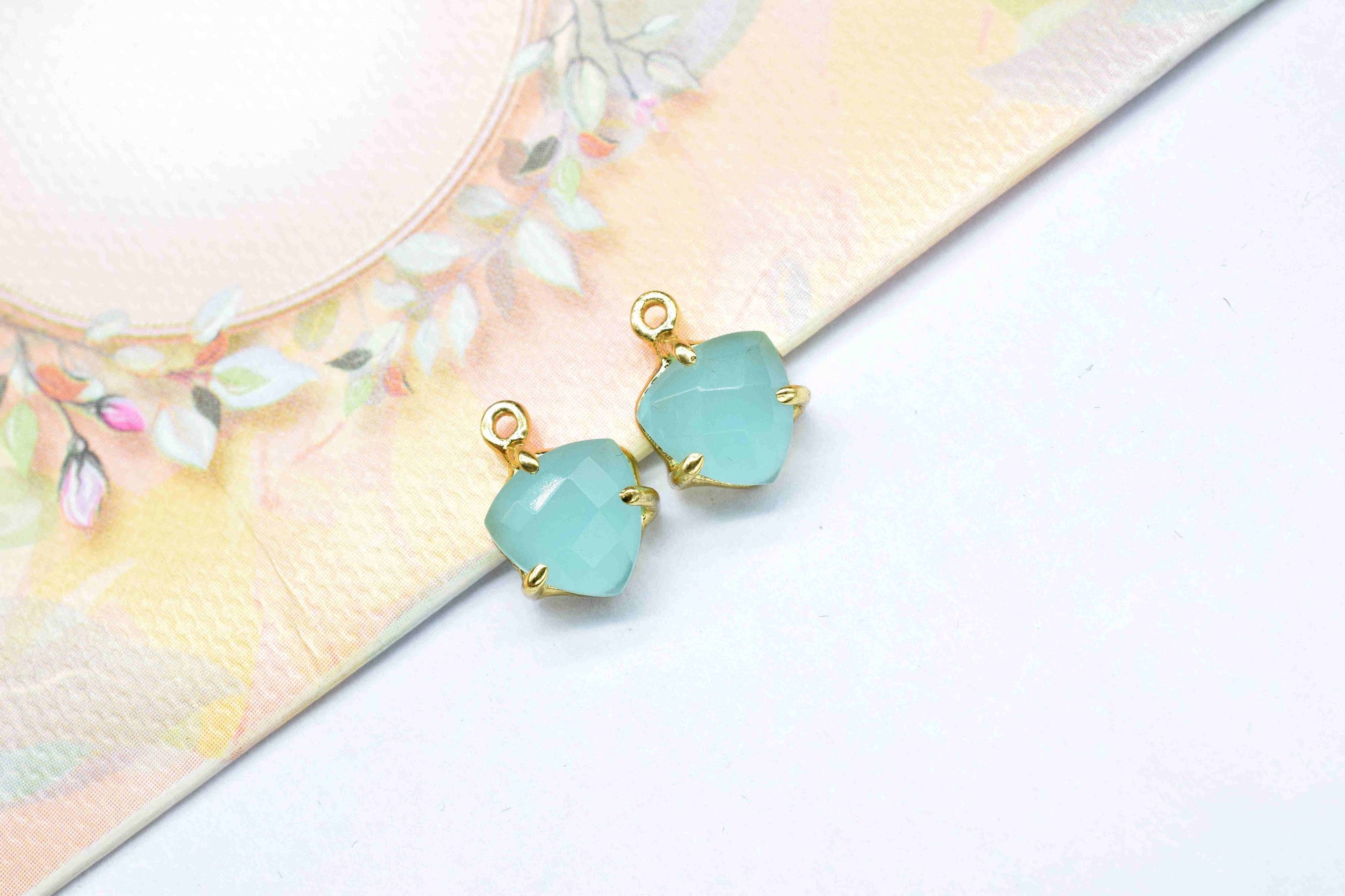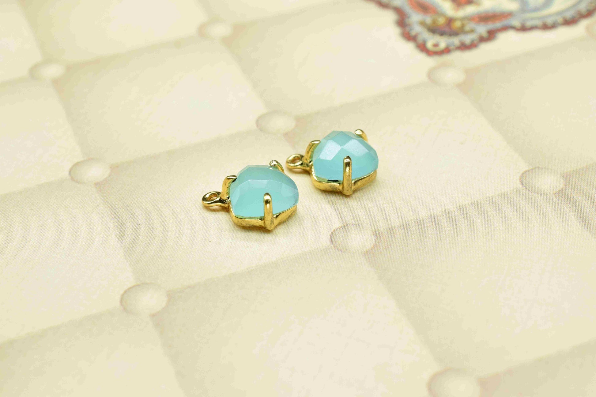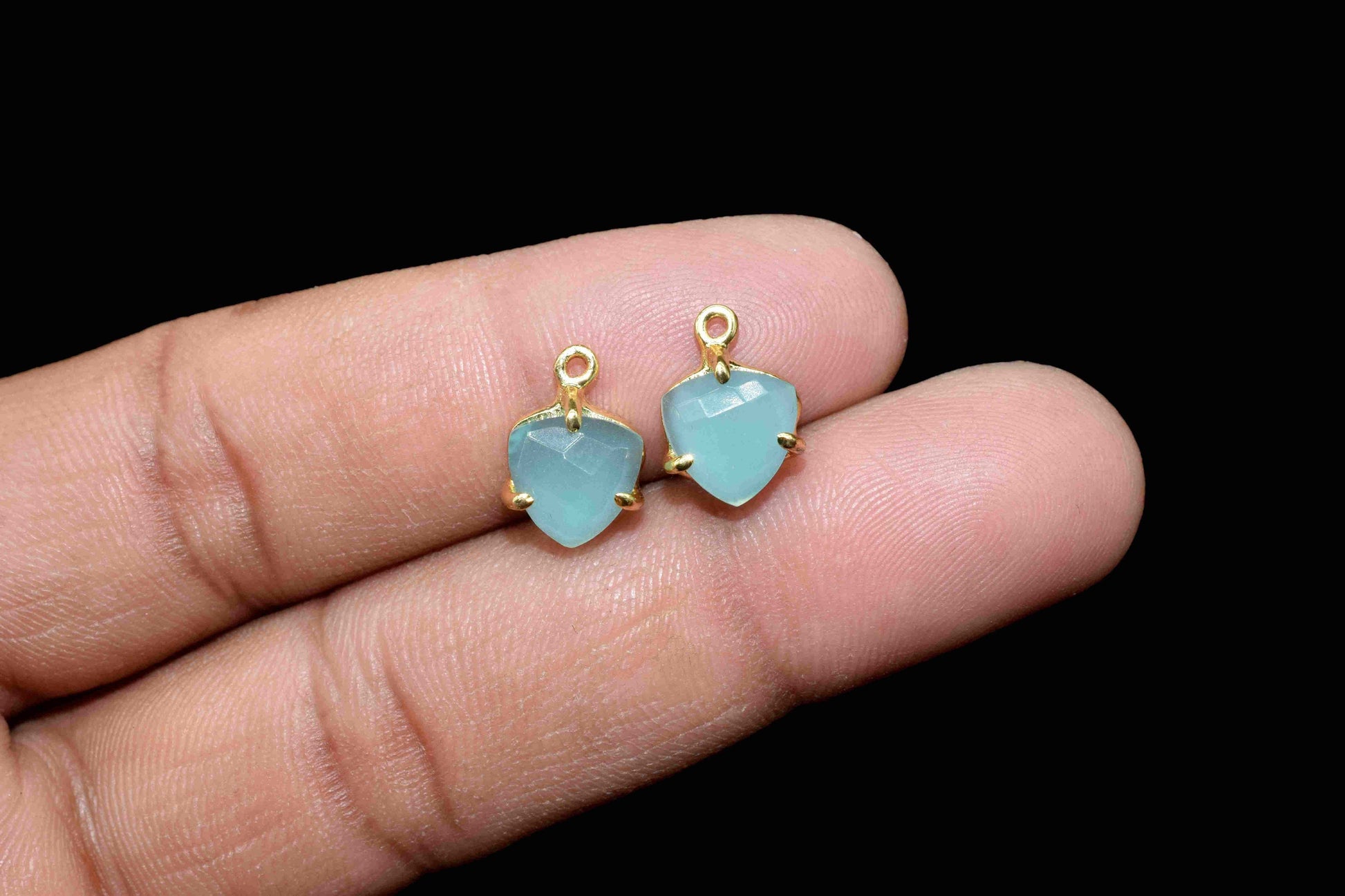 Aqua Chalcedony 8mm Triangle Shape Single bail connector,Aqua Quartz Handmade Gemstone Bezel,Green jewelry making,Prong Set Bezel Pendant