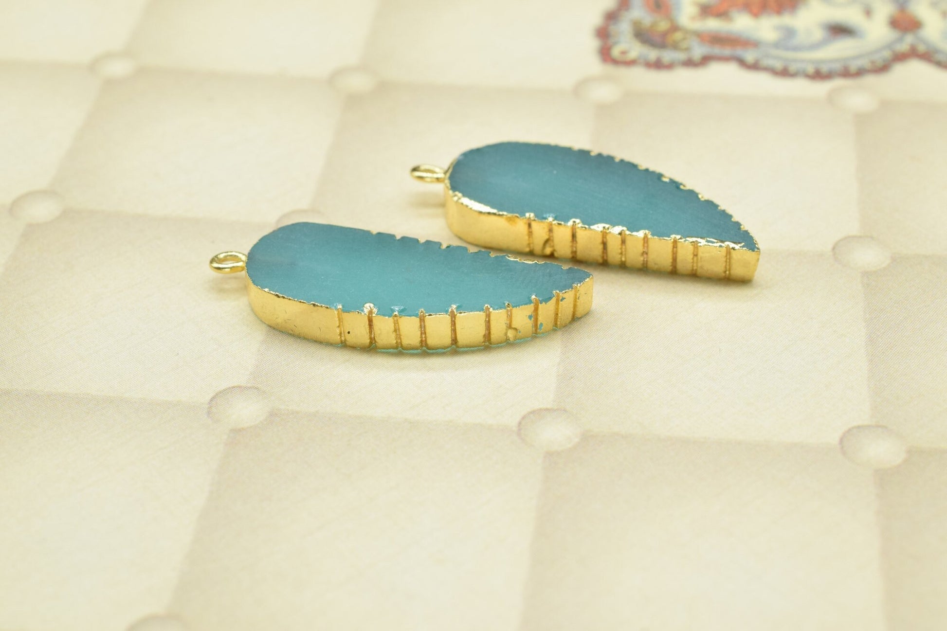 .Aqua Chalcedony Angel Wings Pendants,Handmade Leaf Shape Connector,Aqua Quartz Connectors Jewelry,Single Bail,Gemstone Leaf Pendant Necklace