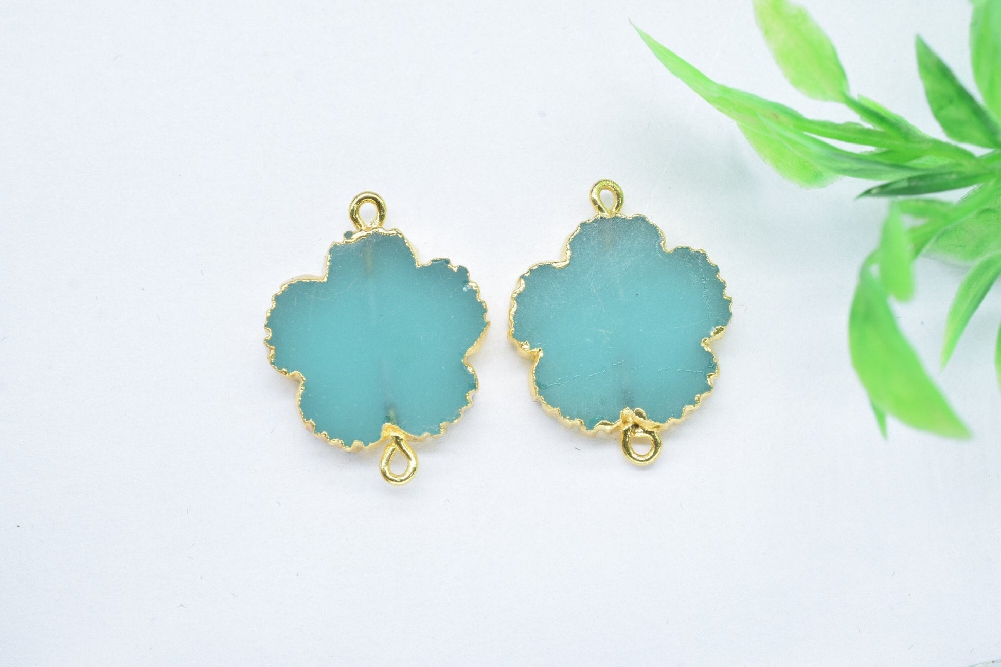 Aqua Chalcedony Clover charm Pendants,Handmade Flower Pendant,Necklace Connectors Jewelry,Gemstone Electroplated Charm,Double Bail Connector