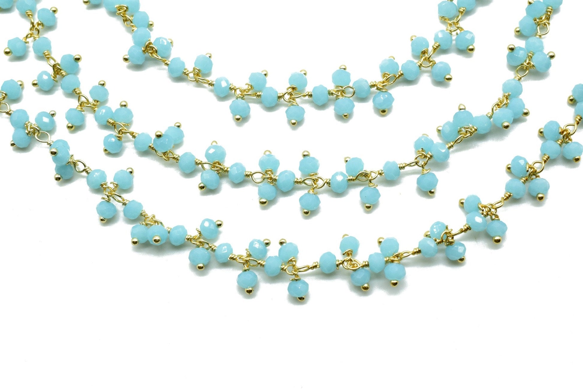 Aqua Chalcedony Cluster Rosary Chain,dangling Chain,Thick Chain, Gold Wire Wrapped Chalcedony Quartz Beaded chain,Flower Chain,Chain by foot