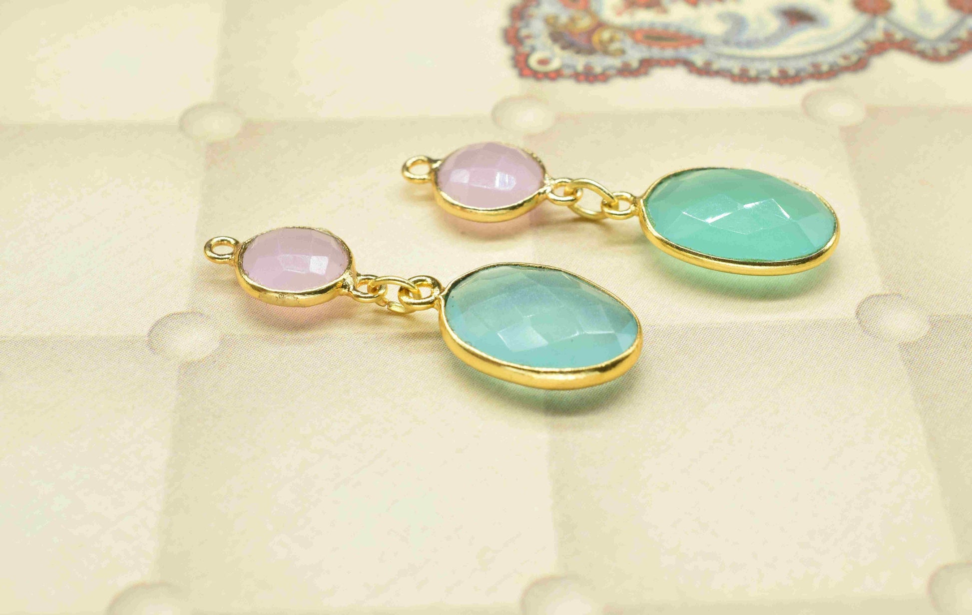 Aqua Chalcedony Dangle pendant Charms,Necklace Connector,Handmade jewelry,Component pendant,Station Bezel Link,Multi Gemstone Dangle Earring