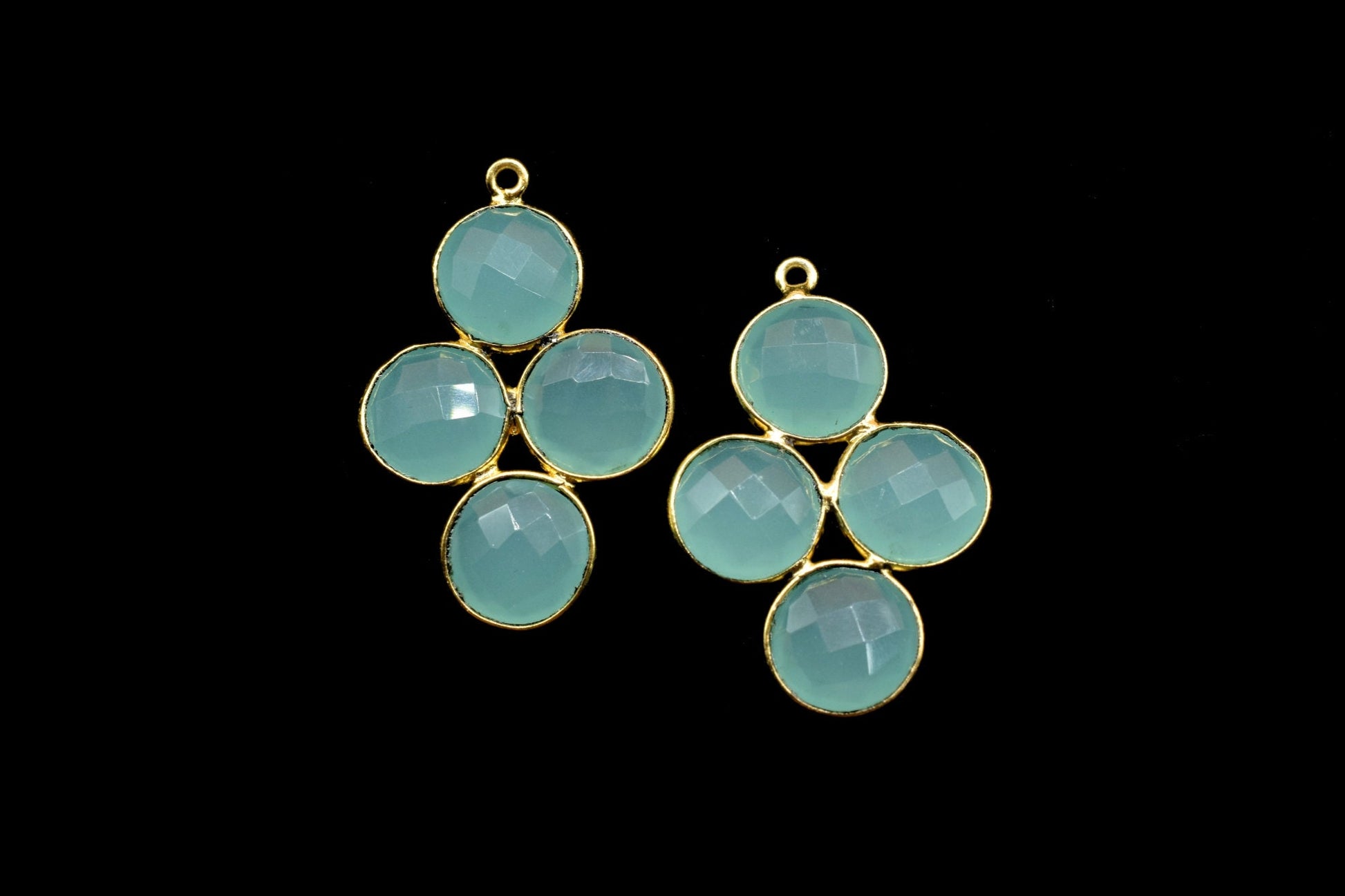 Aqua Chalcedony Earring,Aqua Chalcedony Pendant,Aqua Chalcedony Bezel,10mm Round Bezel,Pendant Connector,Six Attached Bezel,Necklace Pendant