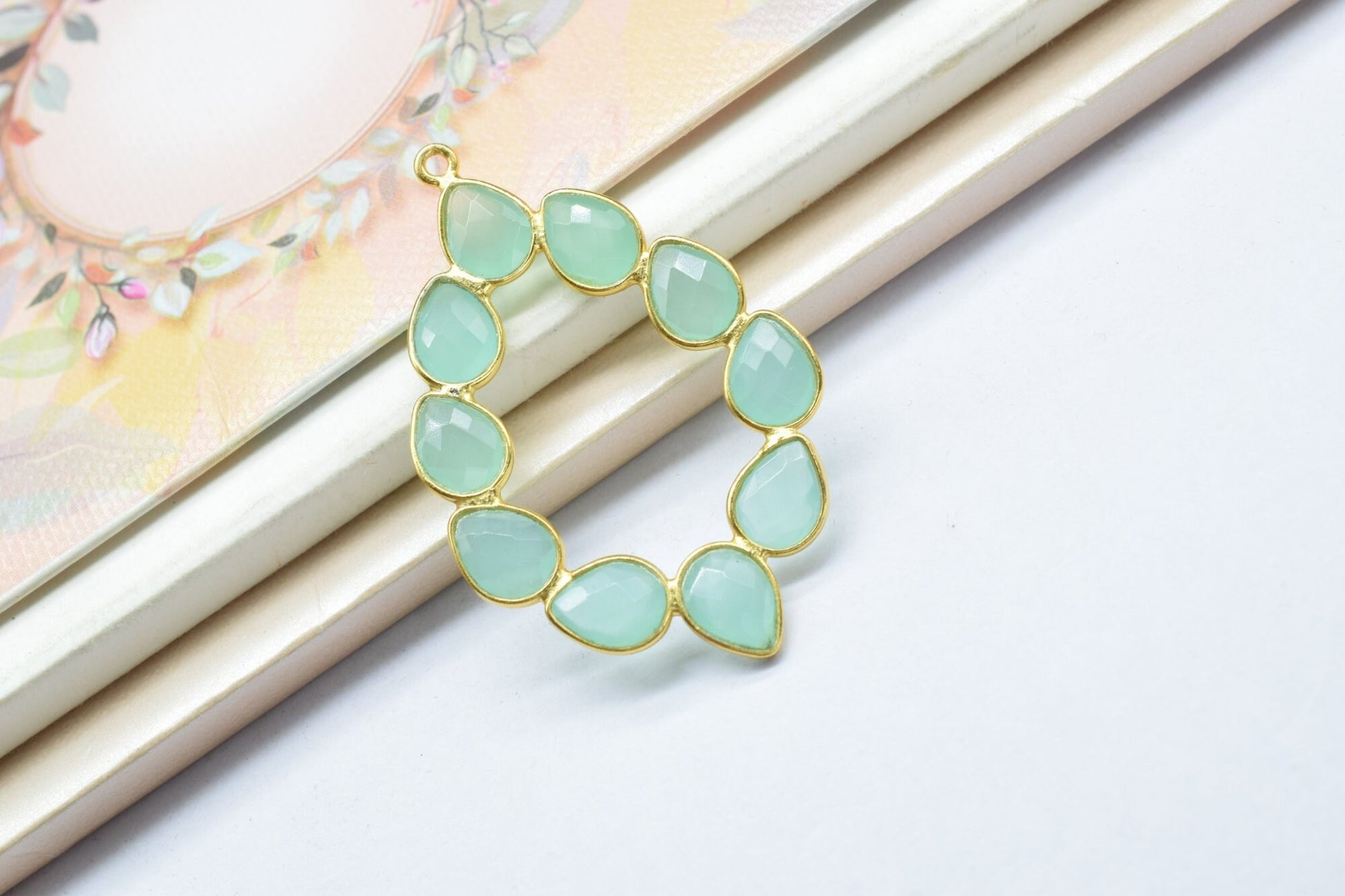 Aqua Chalcedony Earring,Aqua Chalcedony Pendant,Aqua Chalcedony Bezel,10mm t Bezel,Pendant Connector,Six Attached Bezel,Necklace Pendant