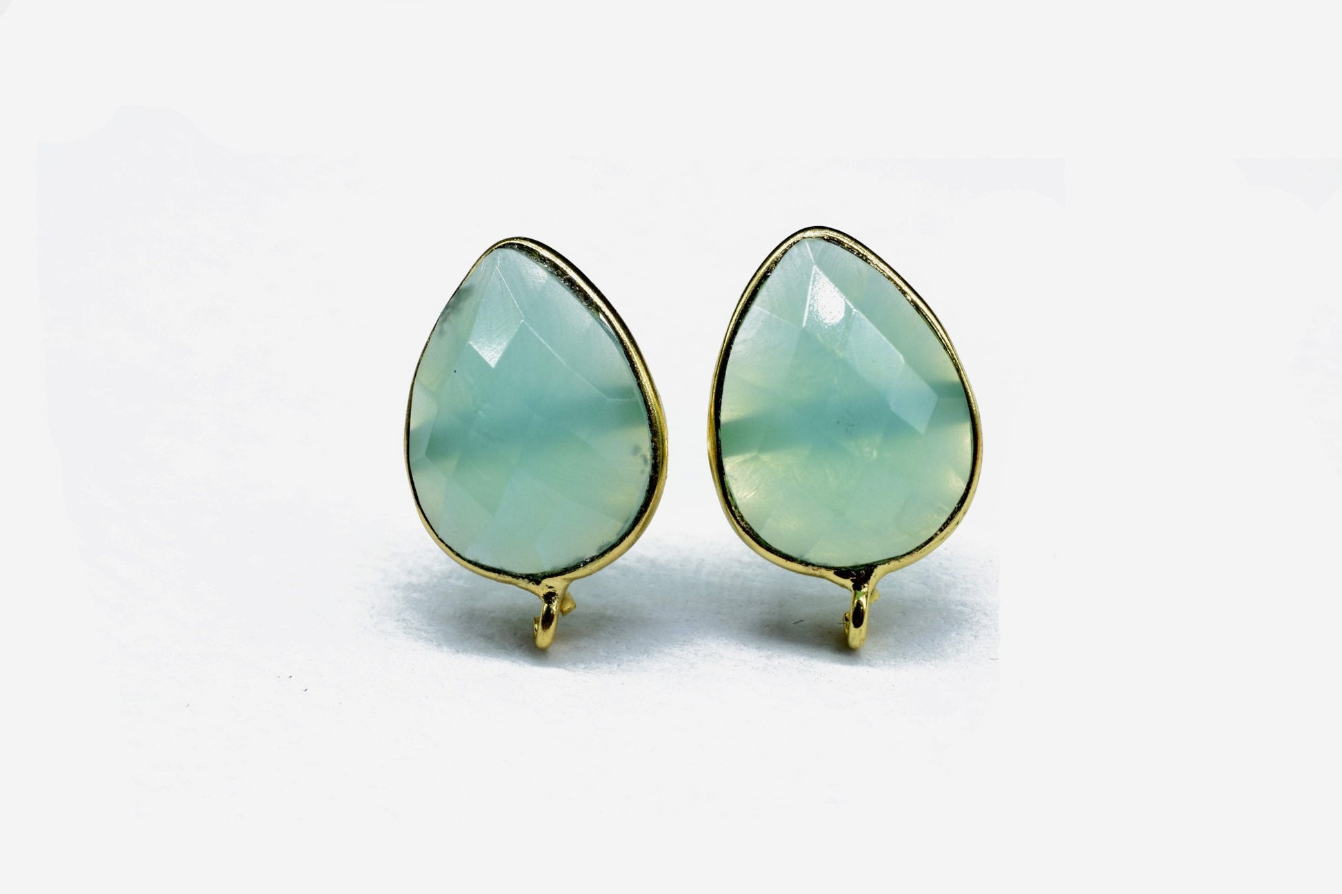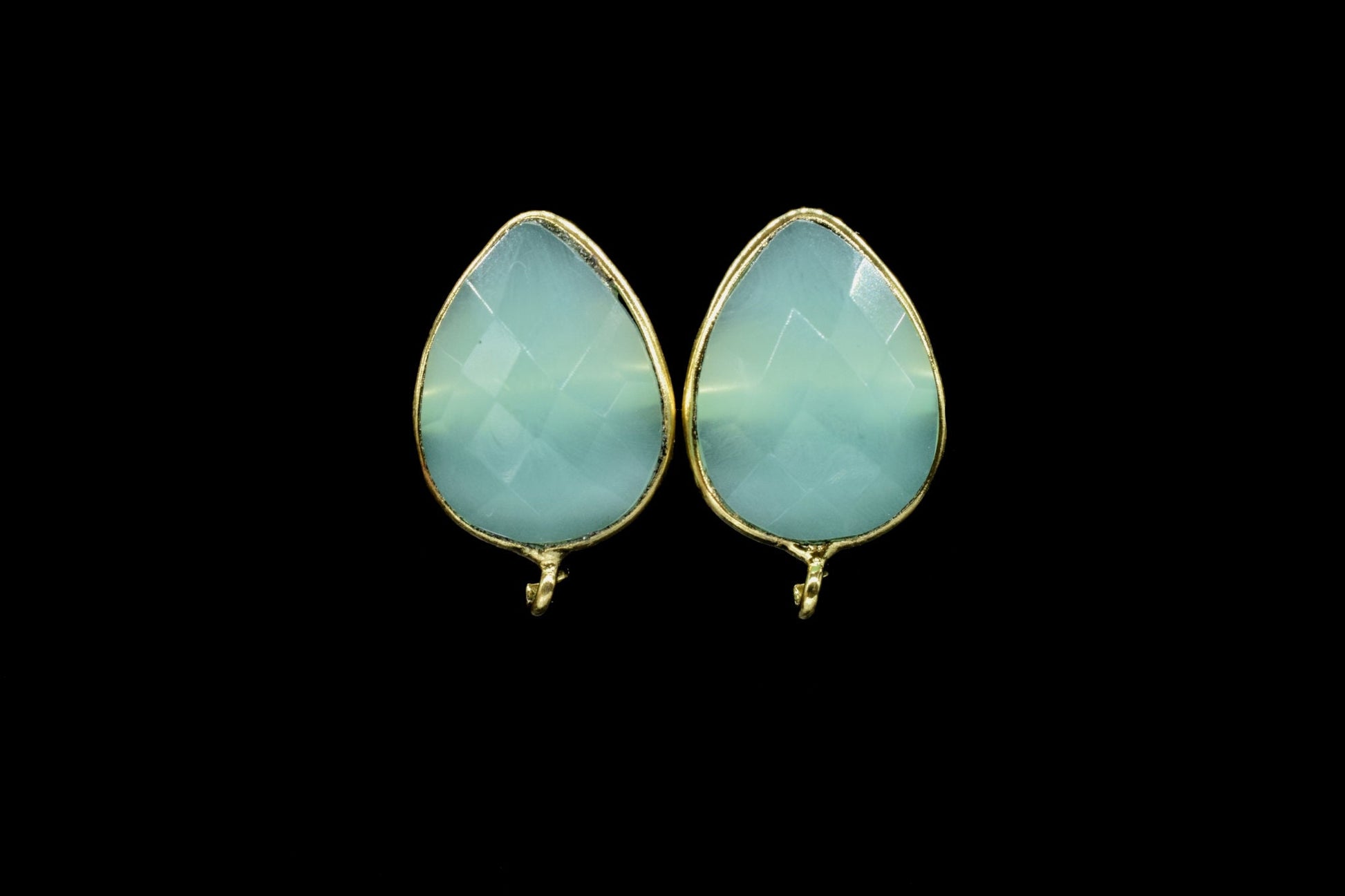 Aqua Chalcedony Earring Connector,Jewelry Making,Ear Post Studs Connector,Single Bail Earrings Connector,Finding Earring Connector,Gift