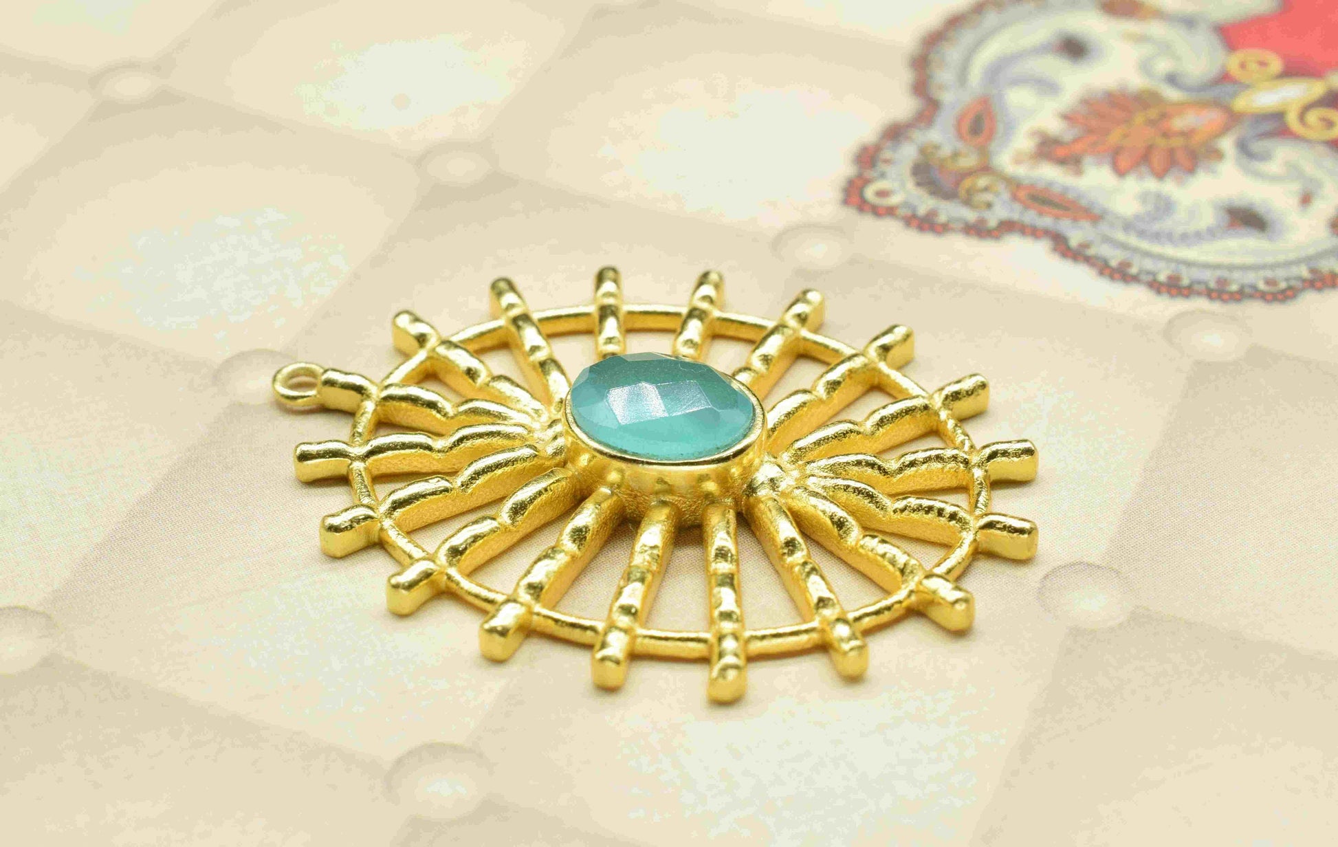 .Aqua Chalcedony Gemstone Component,Single Bail Charm, Chalcedony Connector Pendant, Gold Plated Connectors,Pendant Jewelry,Earring Component