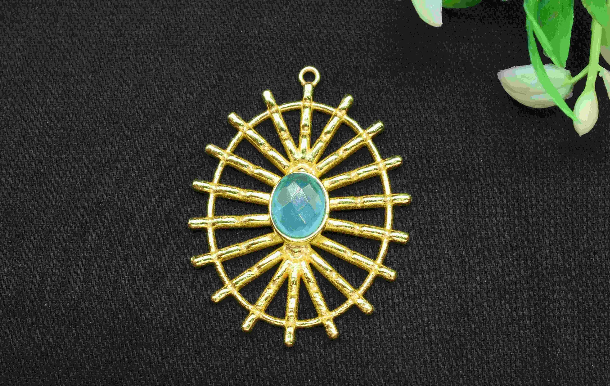 Aqua Chalcedony Gemstone Component,Single Bail Charm, Chalcedony Connector Pendant, Gold Plated Connectors,Pendant Jewelry,Earring Component