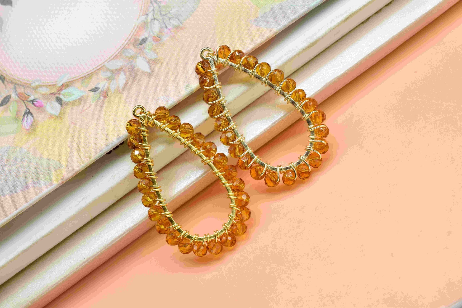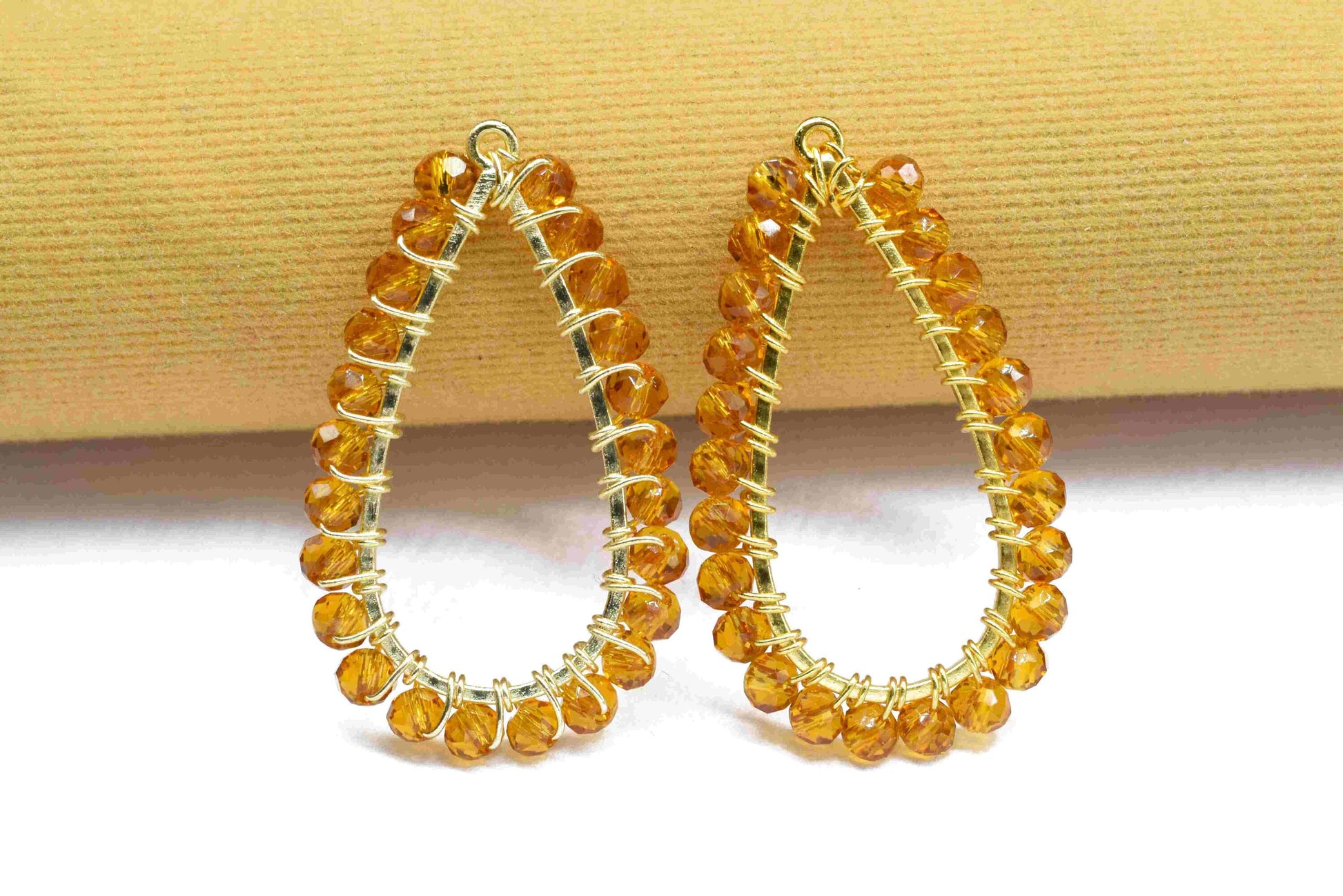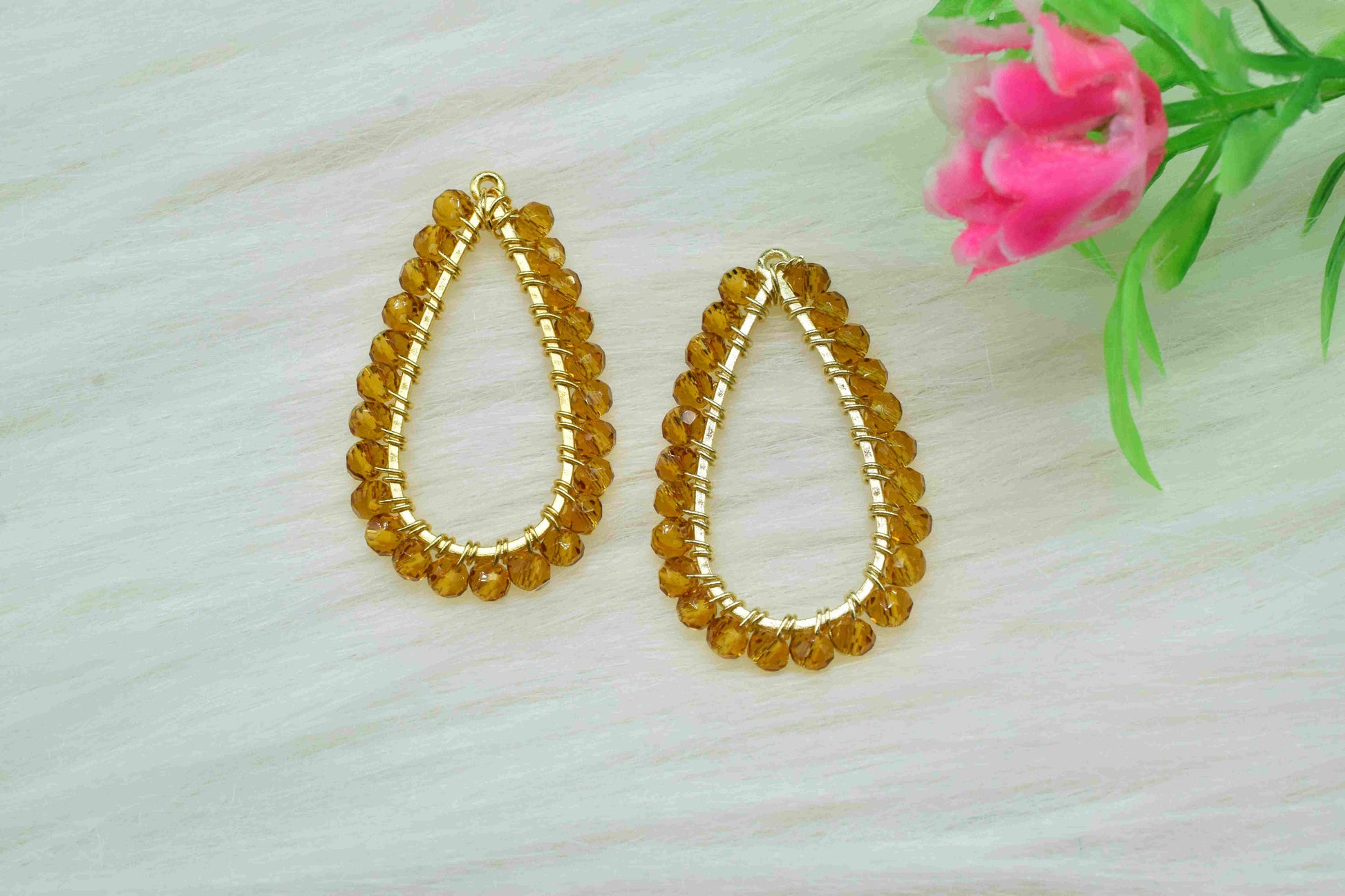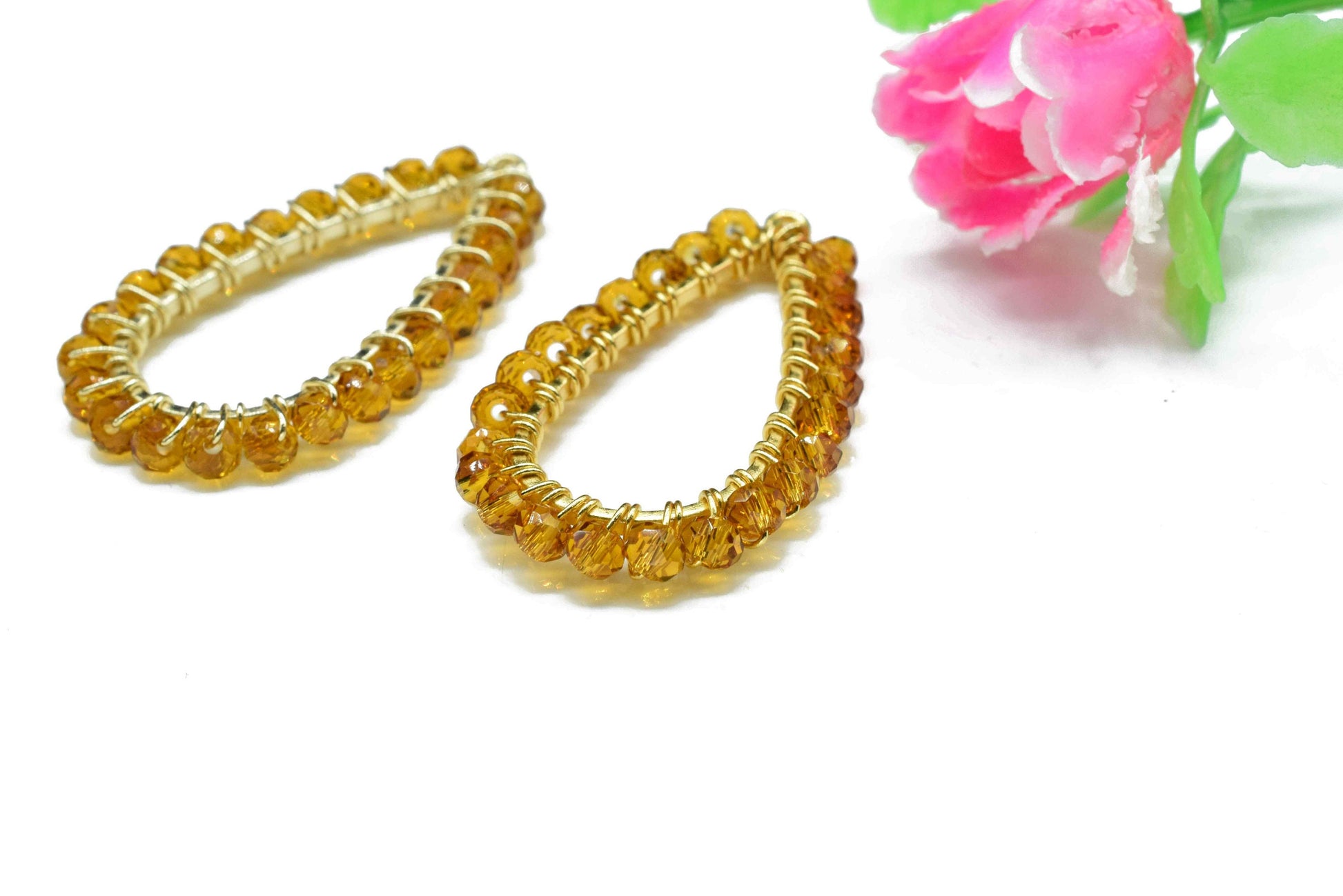 .Citrine Wire Wrapped Earring,Gemstone Component,Handmade Earring,Dangle Earring Component,Findings Earring Components,Connector Jewelry,Gift