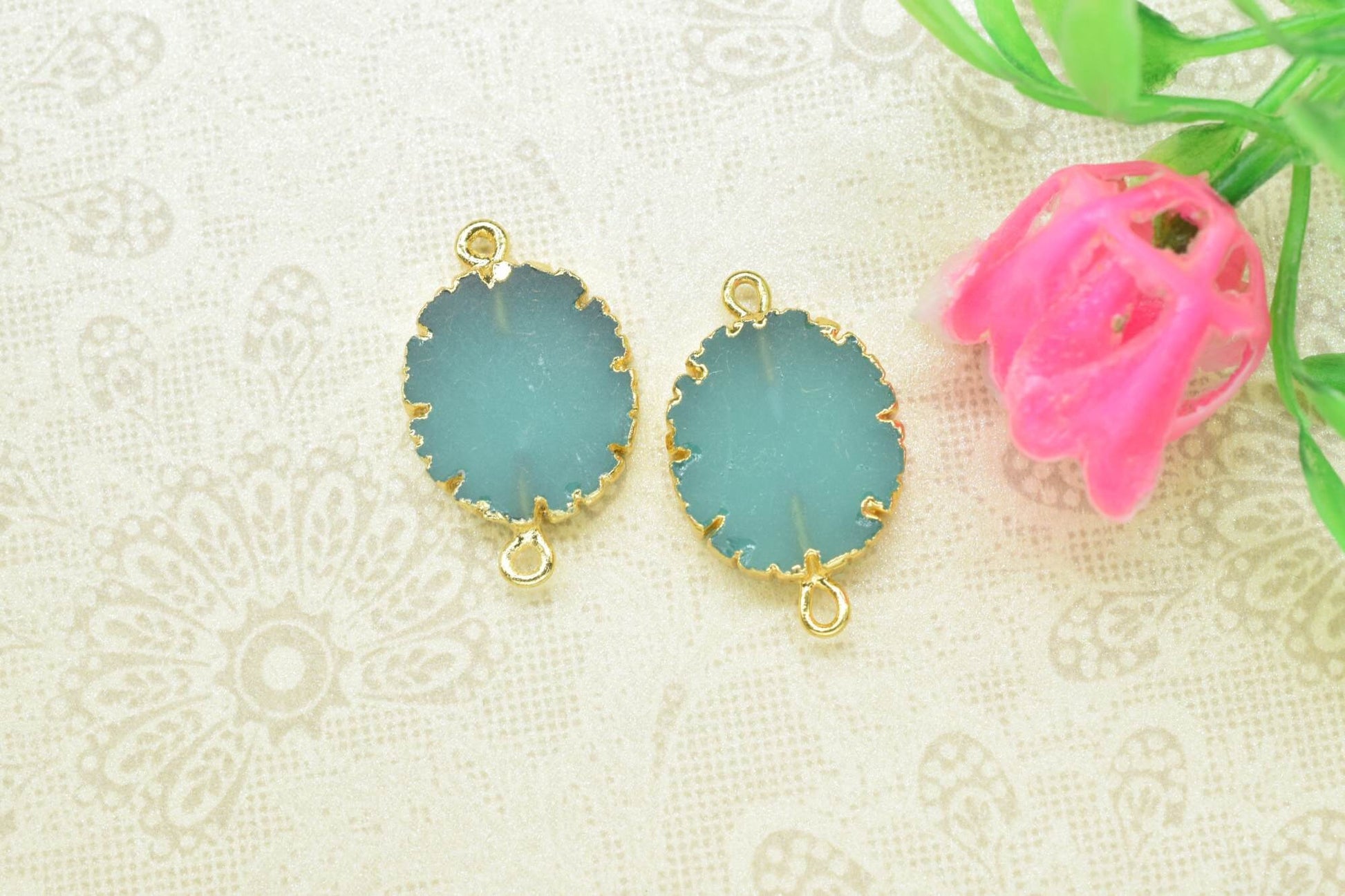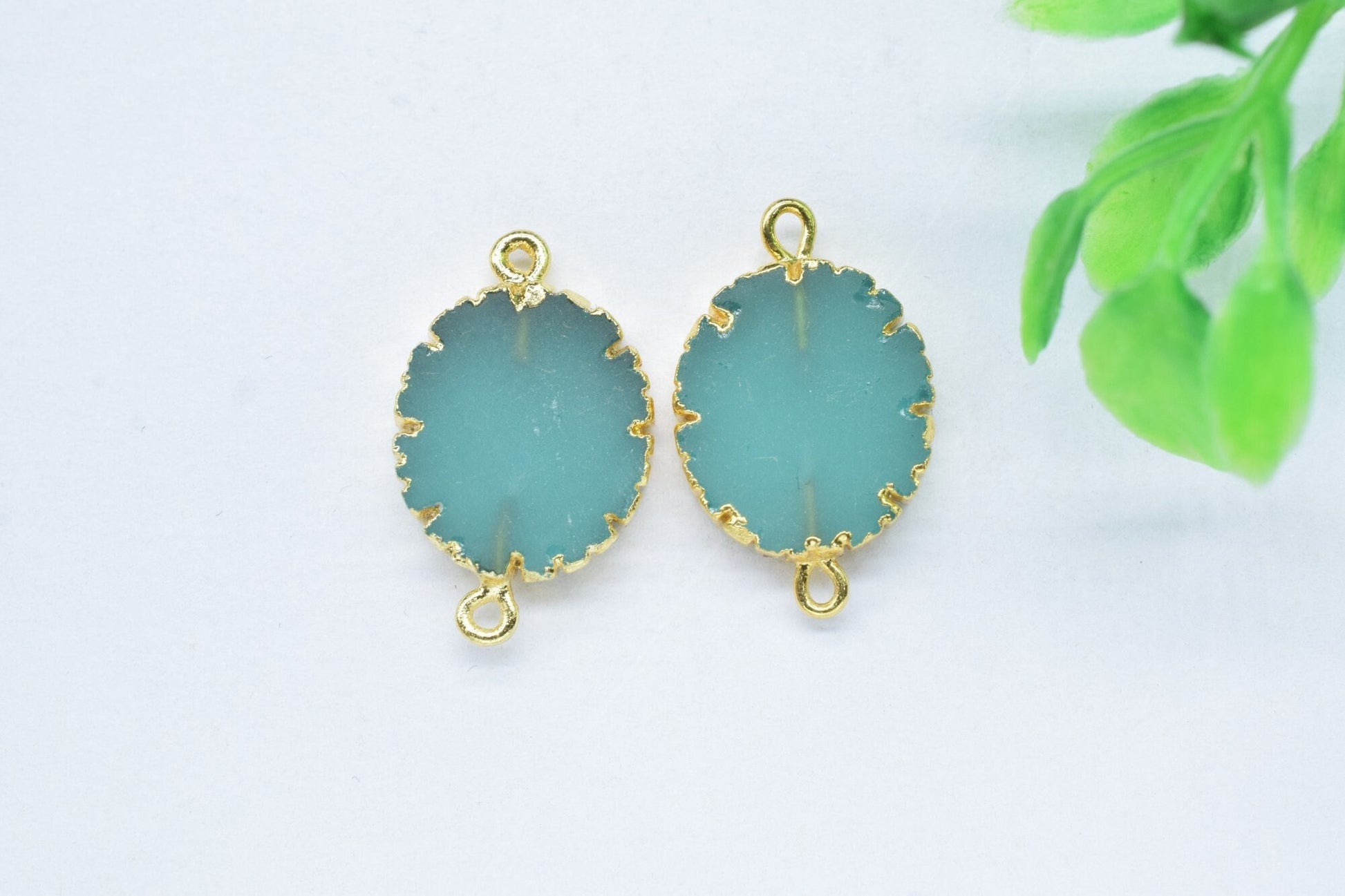 .Aqua Chalcedony Oval Shape Pendants,Handmade Connector,Electroplated Jewelry,Double Baill Gemstone Connector,Cabechon Pendant Charms,Gift