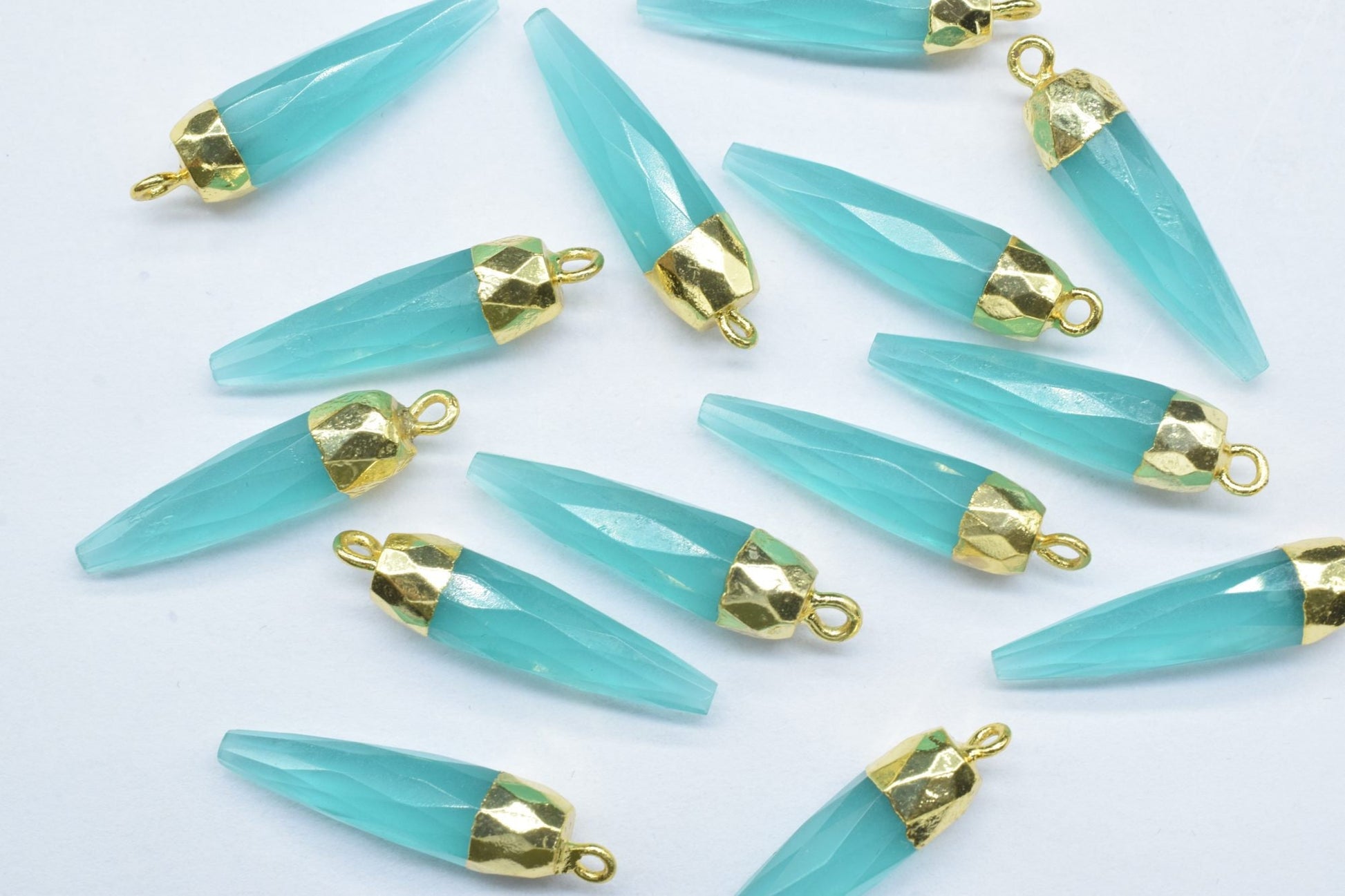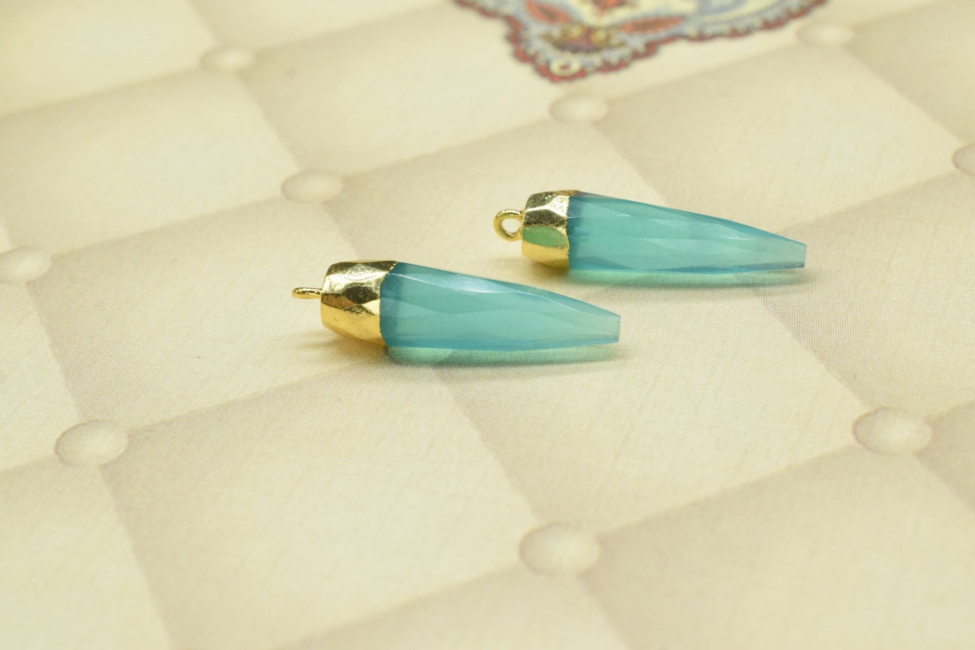 .Aqua Chalcedony Pencil Connector,Sea Blue Pendant Jewelry Making Supply,Gemstone Single Bail Pendant,Handmade Faceted Spike Pointed Charm