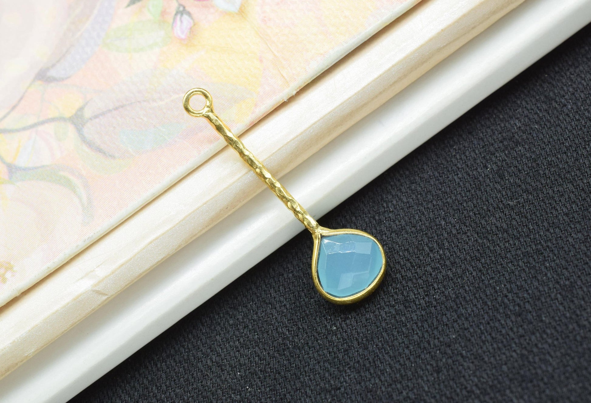 .Aqua Chalcedony Pendant/Gemstone Component/Faceted Aqua Chalcedony Single Bail Charm/Necklace Pendant/Heart Shape Charm/Wholesale Supply/