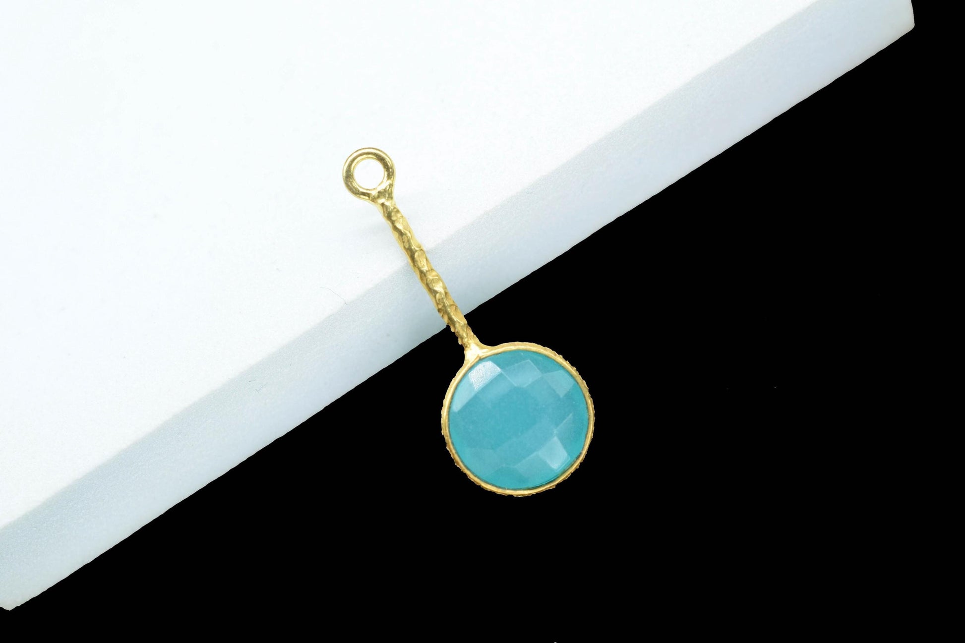 Aqua Chalcedony Pendant/Gemstone Component/Single Bail Charm/Necklace Pendant/Round Shape Charm/Wholesale Supply/Gold Plated Jewellery/Gift