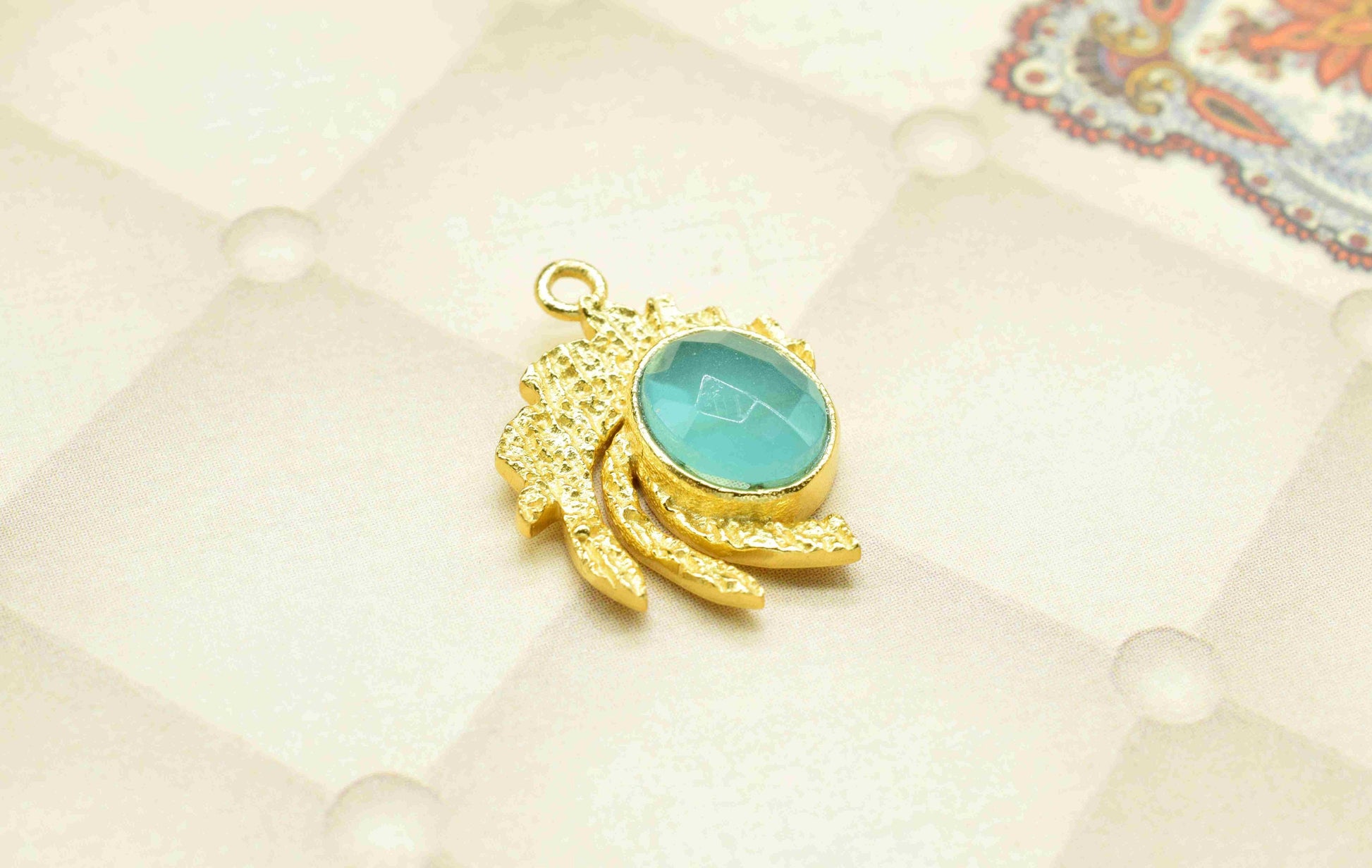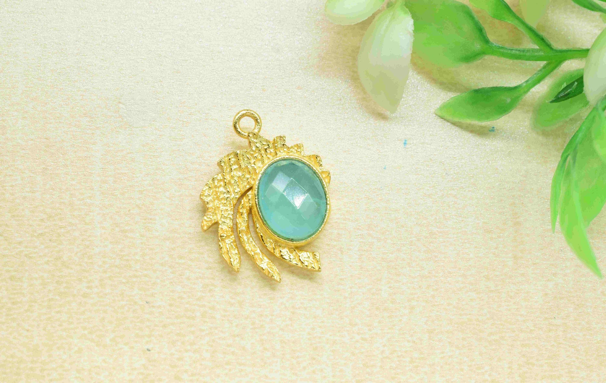 Aqua Chalcedony Pendant , Gemstone Handmade Pendant , Bulk Gemstone Pendant , Gold Plated Connectors ,Single Bail Gemstone Connector Charm