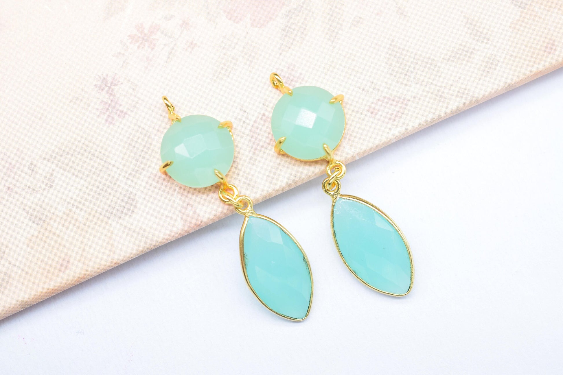 .Aqua Chalcedony Prong Bezel Connector/Aqua Pendant/Prong Bezel Jewelry/Station Bezel Link Pendant/Handmade Jewelry/Connector/B'day Gift