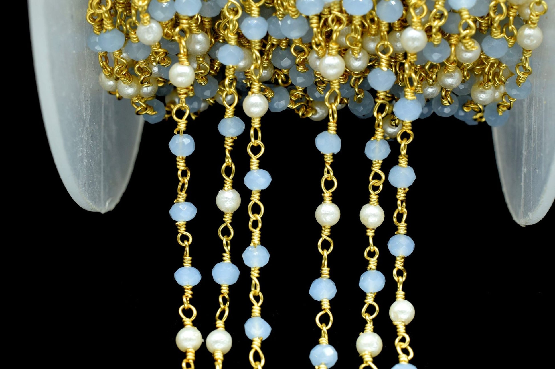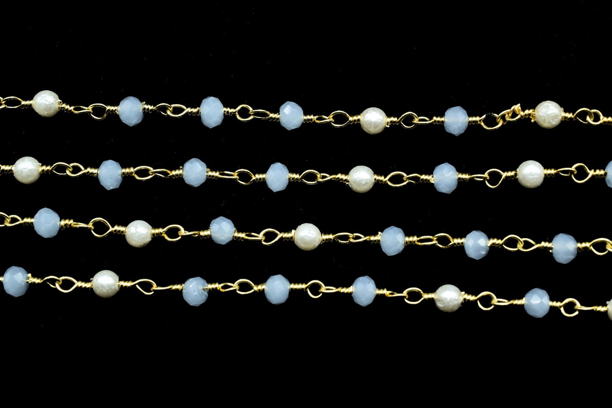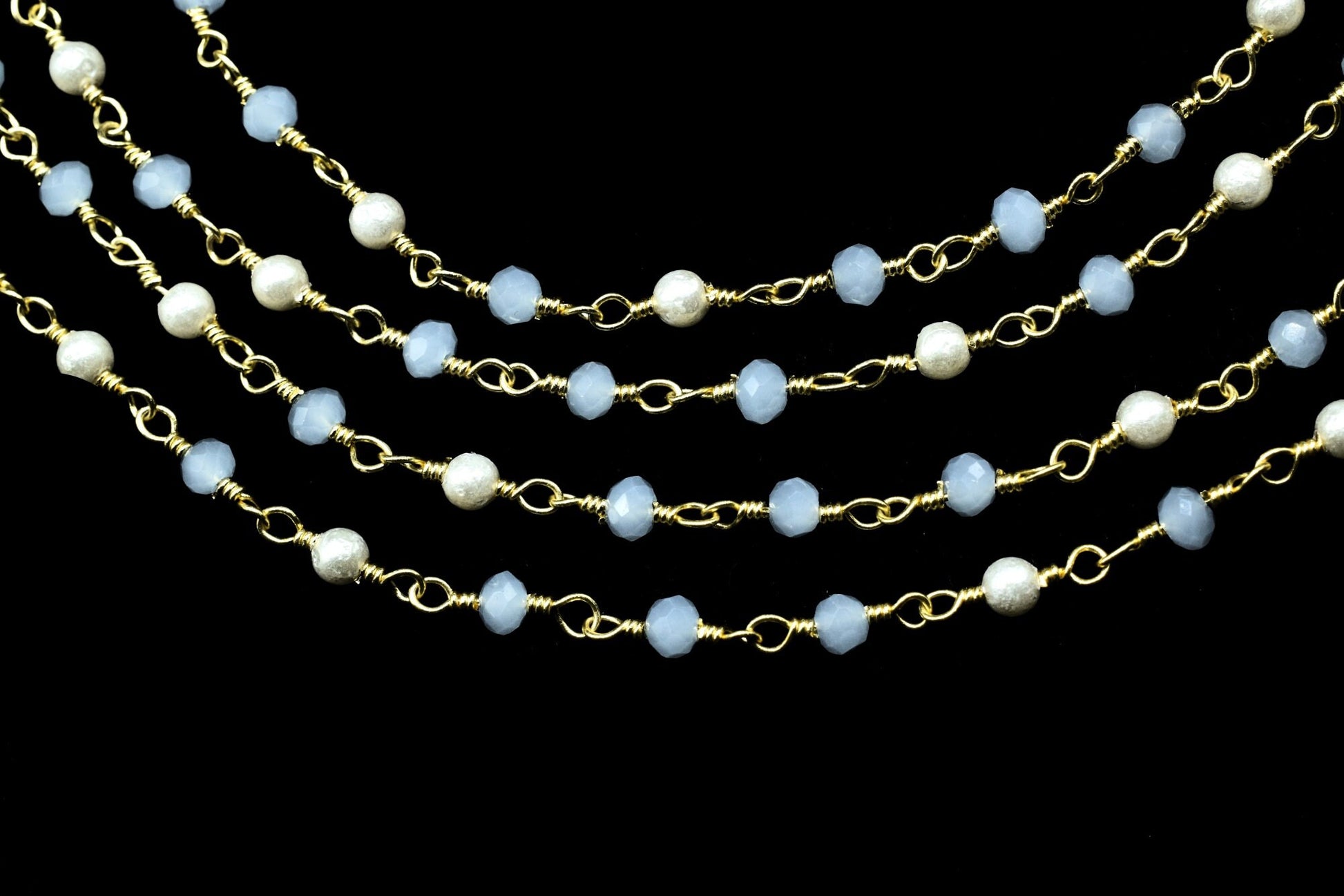 Aqua Chalcedony 3mm Beaded Chain,Aqua Chalcedony Rosary ,Gold Plating Wire Wrap Chain,Aqua Chalcedony Brass chain,jewelry making chains,gift