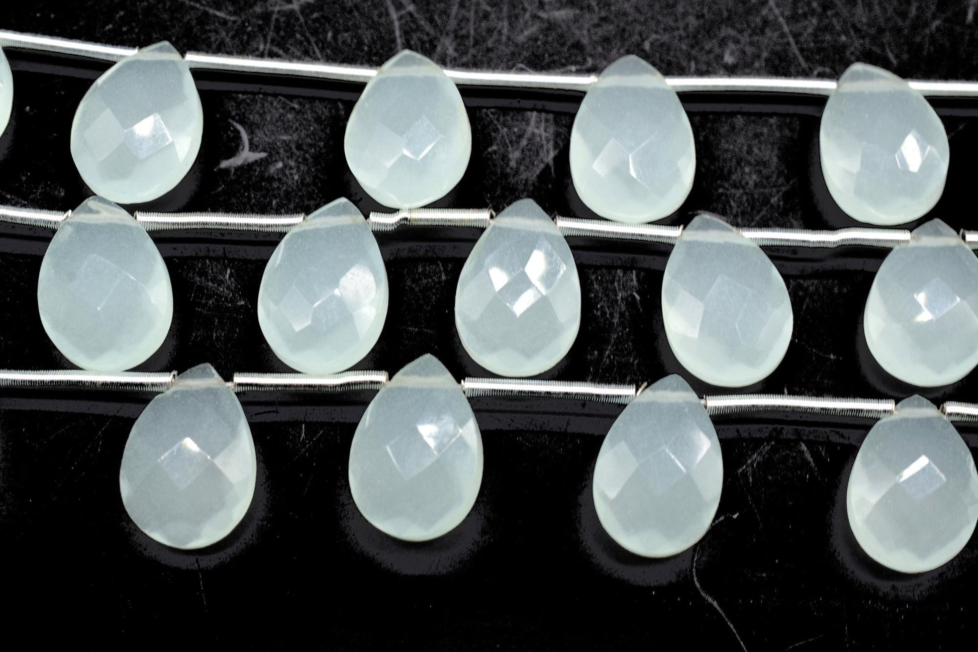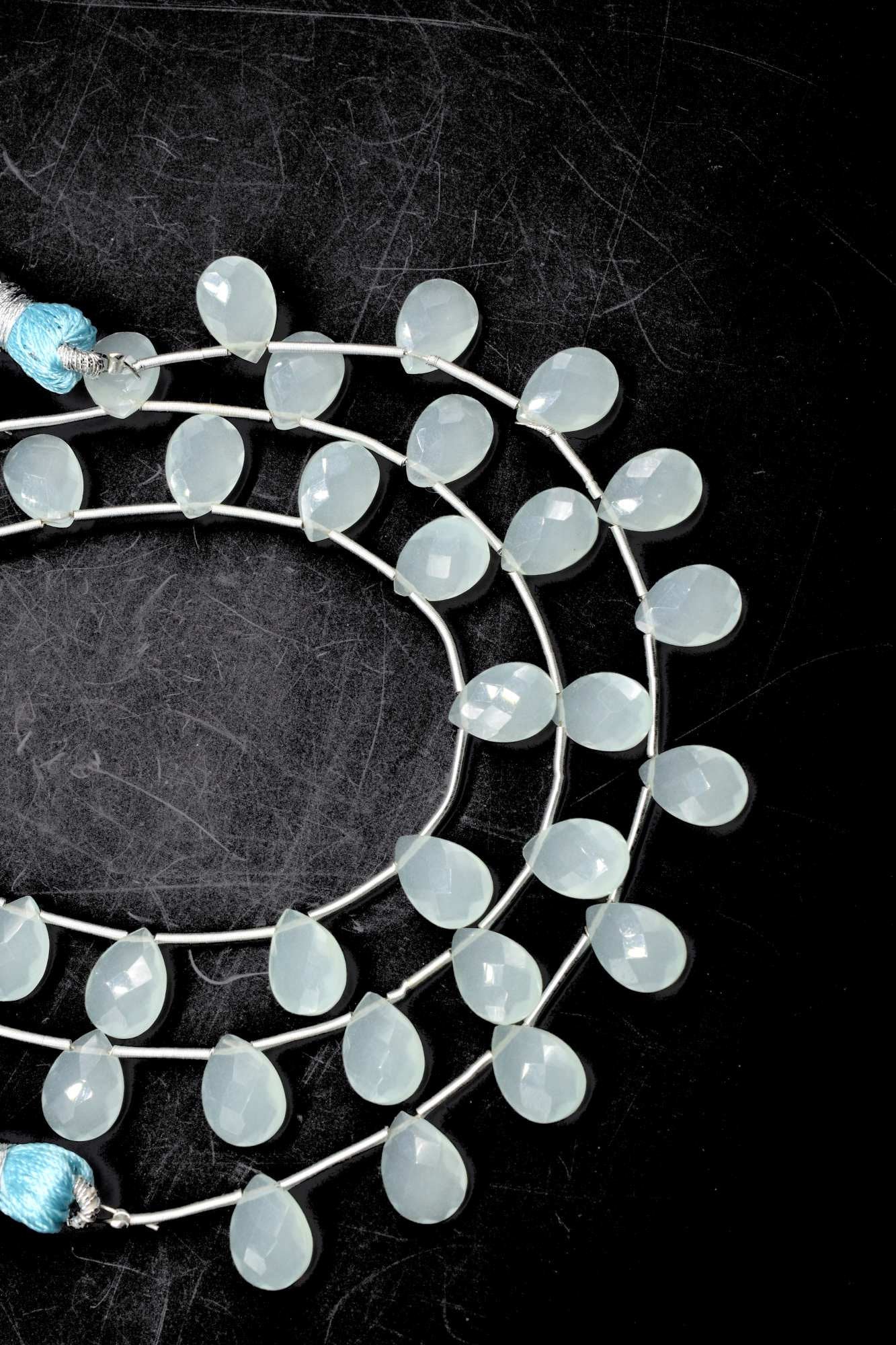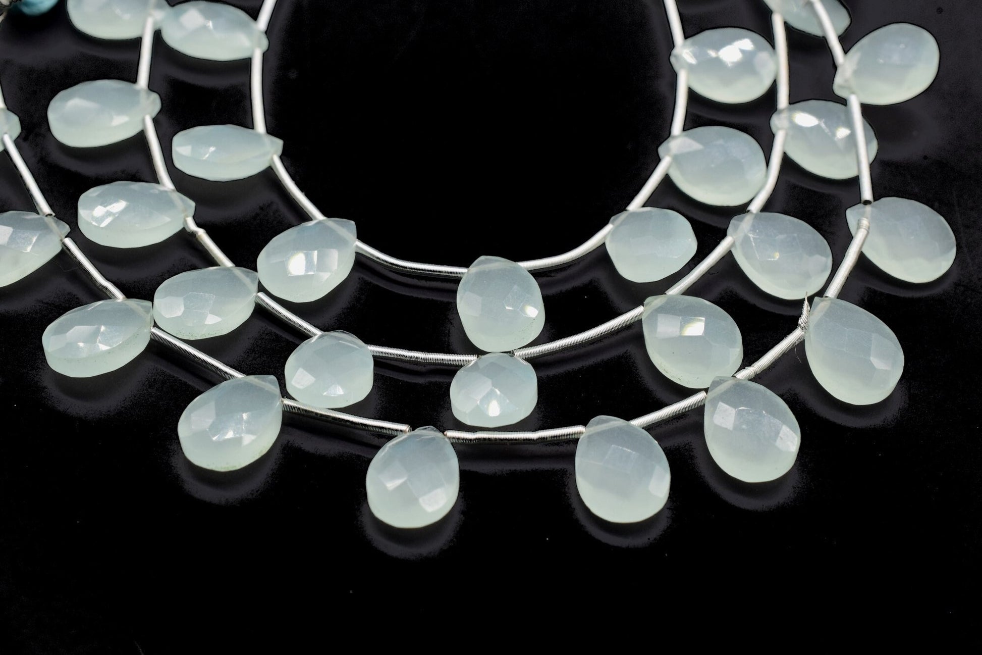 Aqua Chalcedony teardrop Briolettes,Aqua Chalcedony Beads,Aqua Chalcedony Faceted Pear Briolette,Aqua Chalcedony Beads Sparkly Full 8"Strand