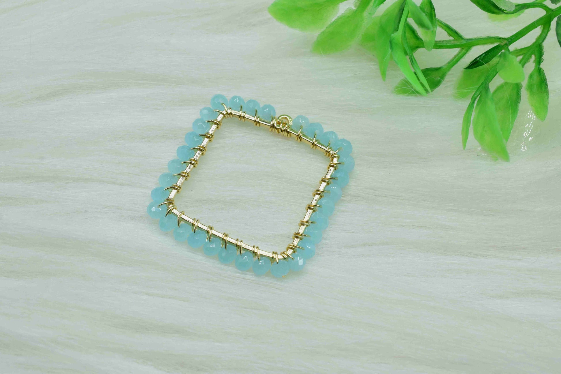 .Aqua Quartz Wire Wrapped Dangle Connector, Gemstone Component, Finding Necklace Component Jewellery, Beaded Link Connector, Handmade Component