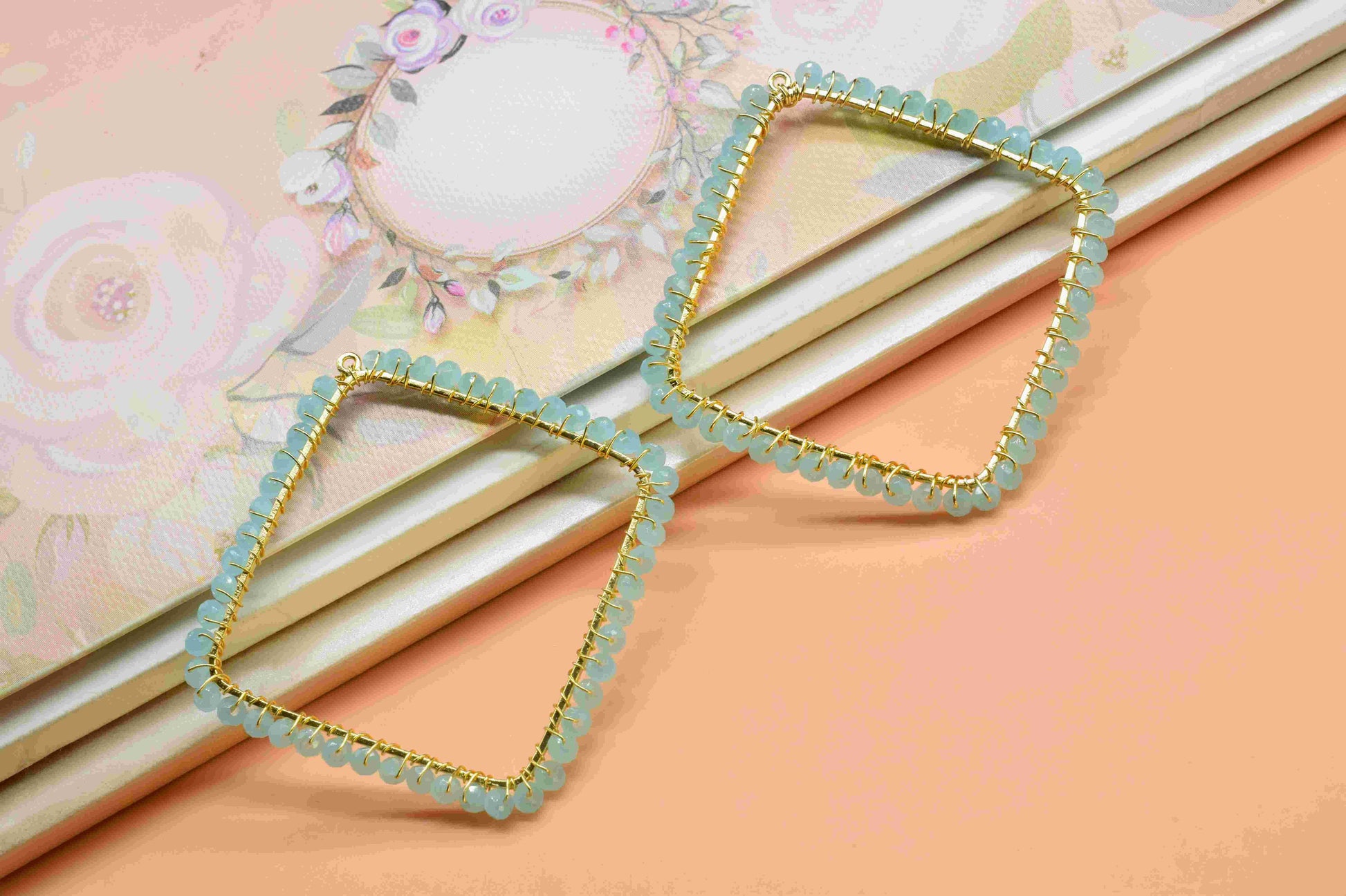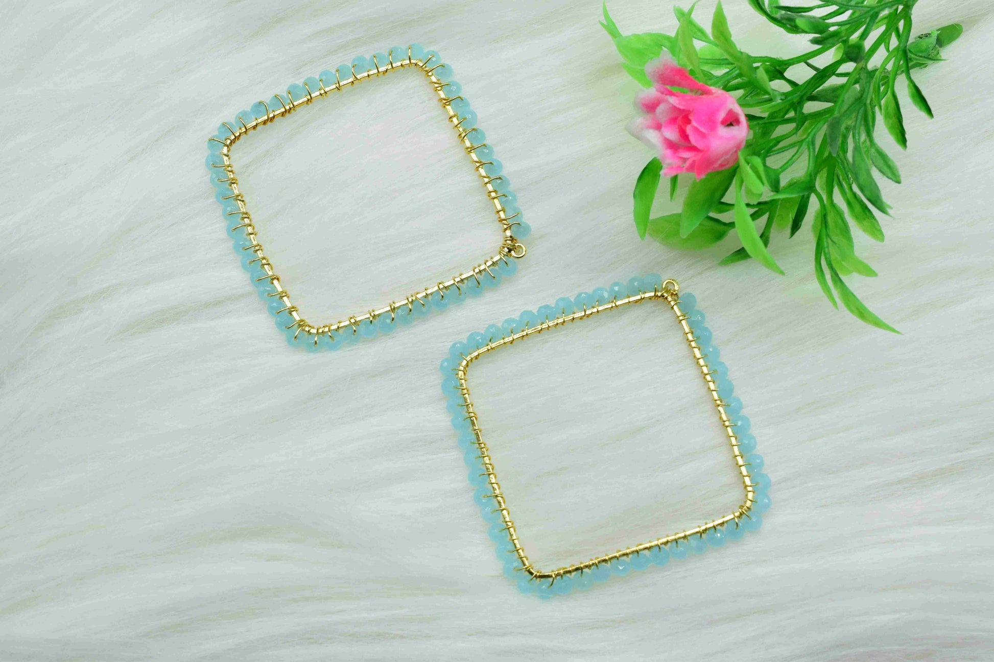 .Aqua Quartz Wire Wrapped Earring,Gemstone Component,Handmade Pendant,Dangle Earring Component,Findings Earring Component,Beaches Jewelry,