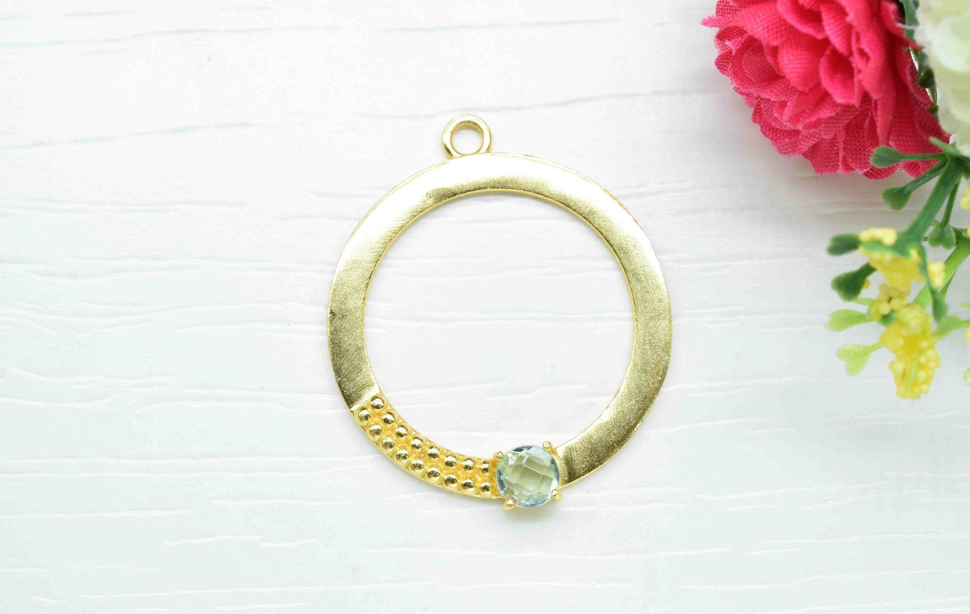 .Aquamarine Component , Single Bail Charm , Aquamarine Connector Pendant , Gold Plated Connectors , Earring Component , B'day Gift