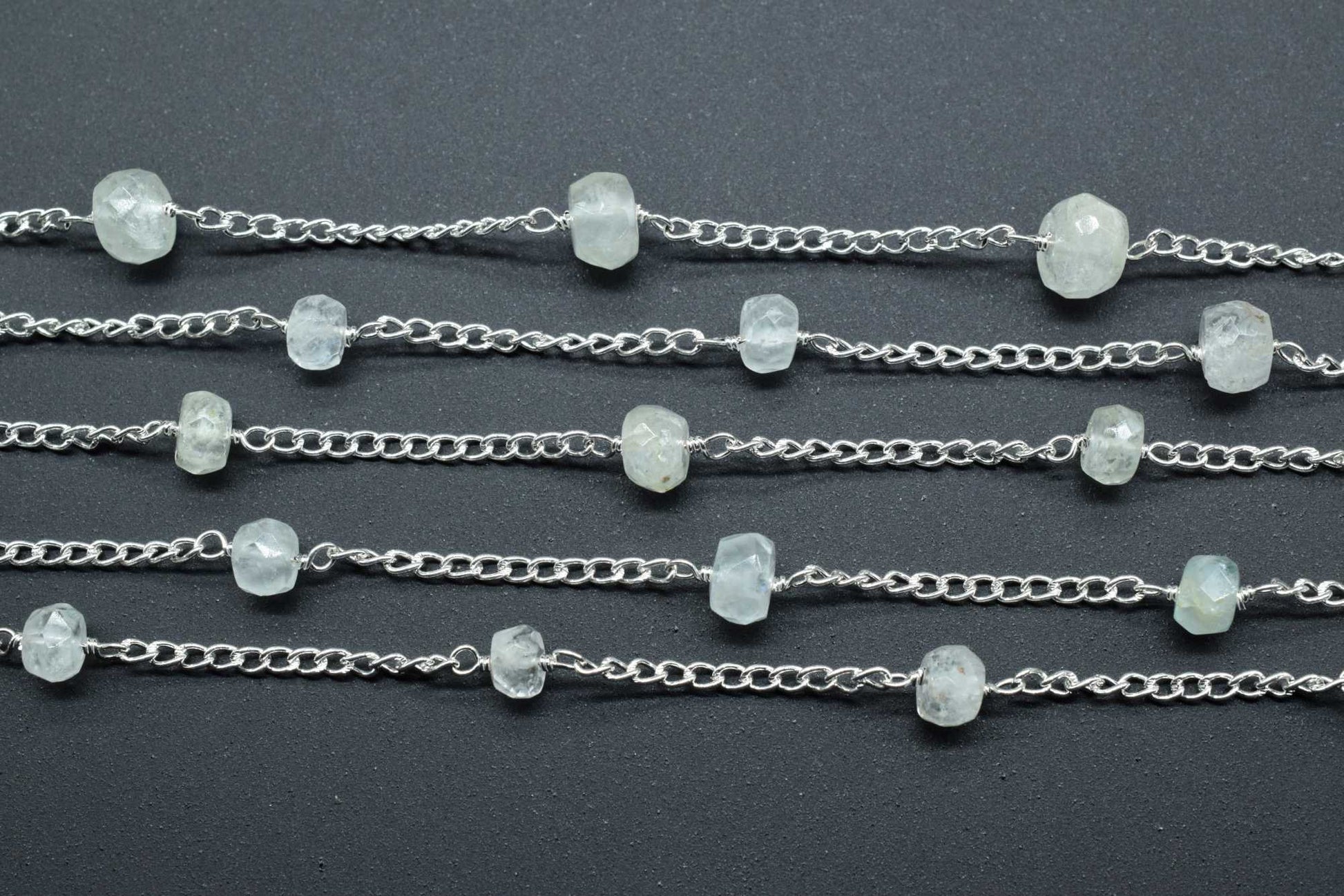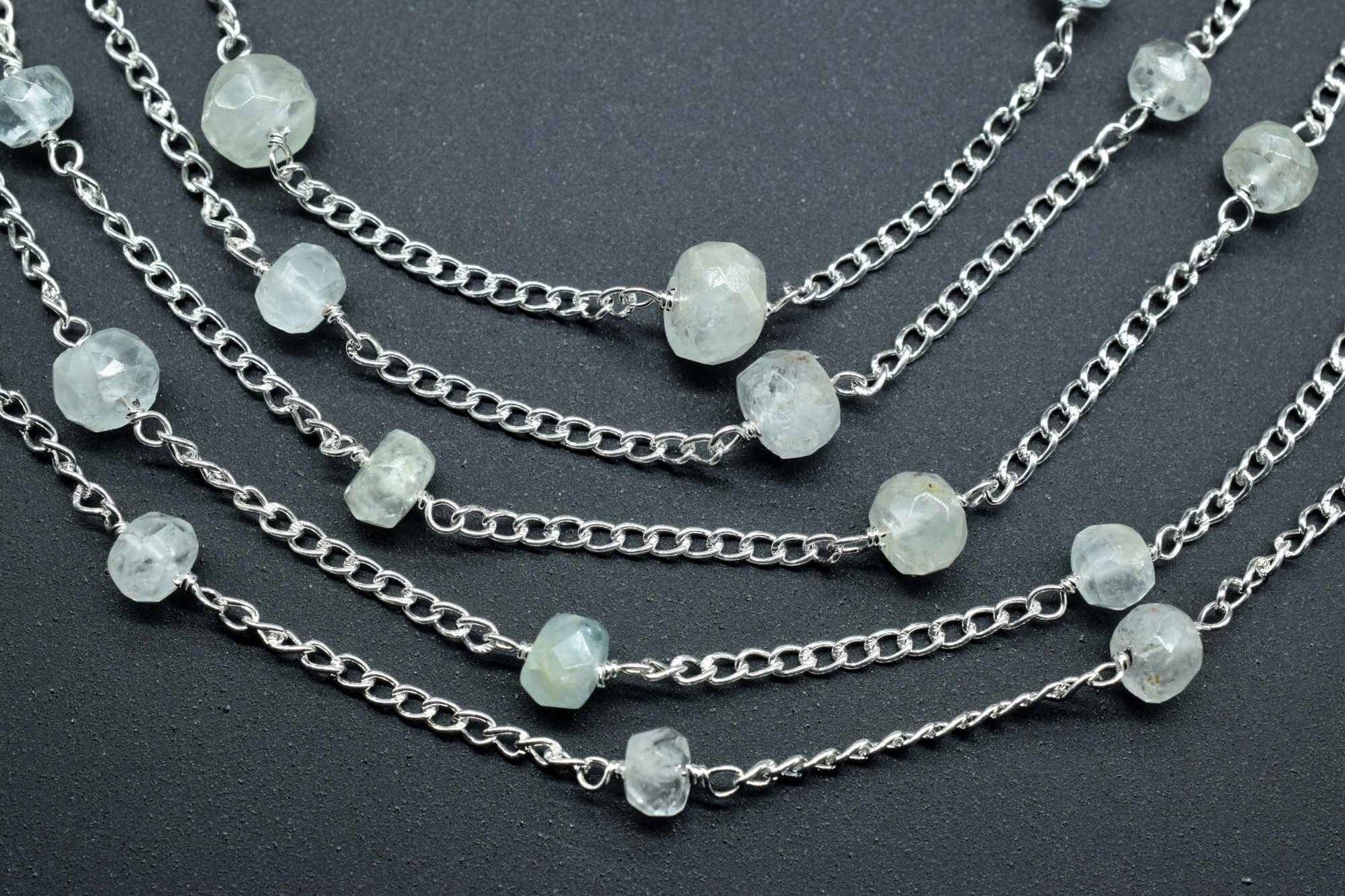 Aquamarine Rosary Chain,Wire Wrapping Gemstone Chain,Faceted Rosary Roll,Aquamarine Rondelle Beaded Chain,6mm Faceted Beads Rosary,Rosary