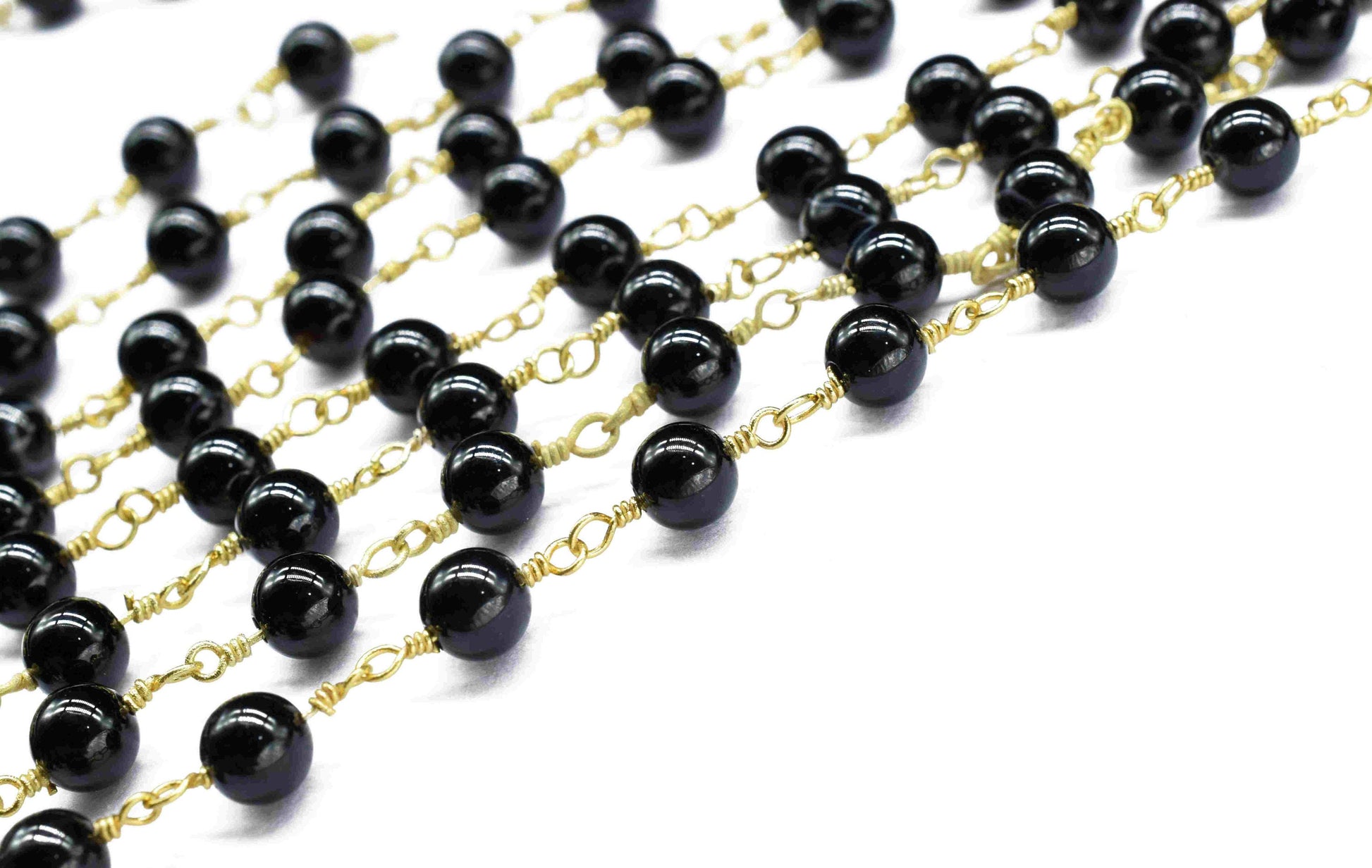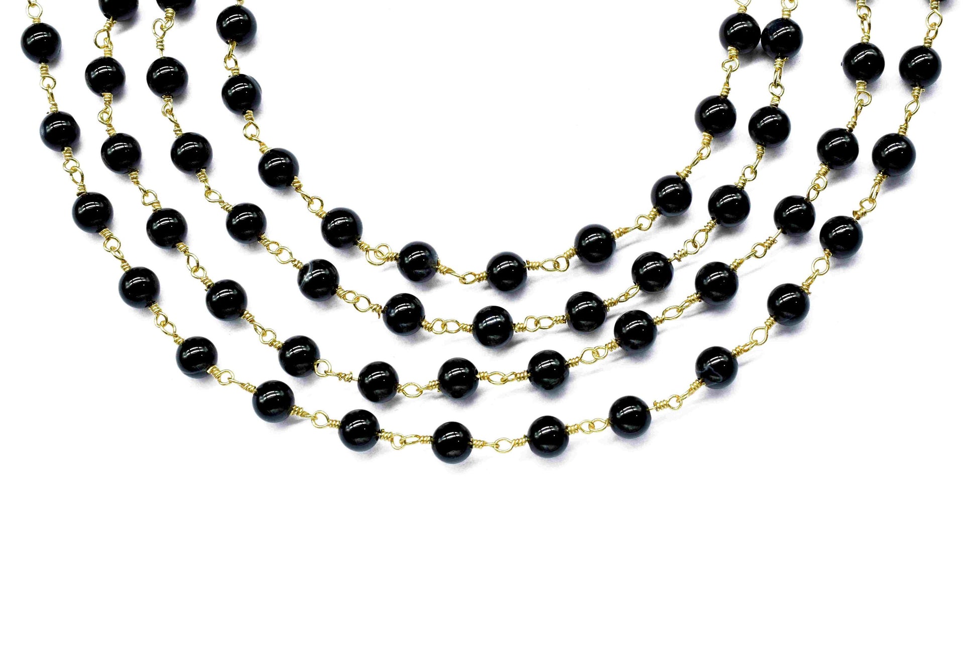 Black Agate Smooth Beads Rosary,black Agate Wire Wrapped Chain By Foot For Necklace,Black Agate 6mm round Shape Handmade Jewelry Making,Gift