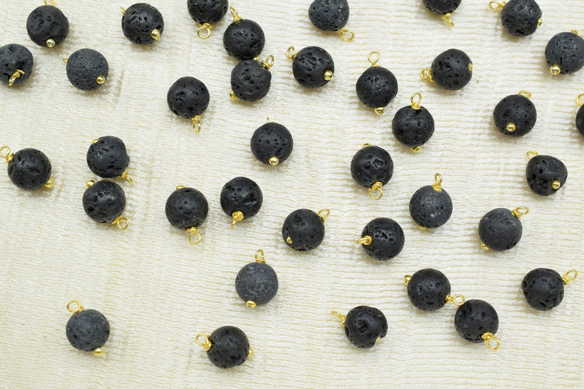 Black Lava 6mm Round Smooth Beads/Earring Components/Black Lava Single wire wrapped Beads/Round Beads Connector/Gemstone Beads/Gift